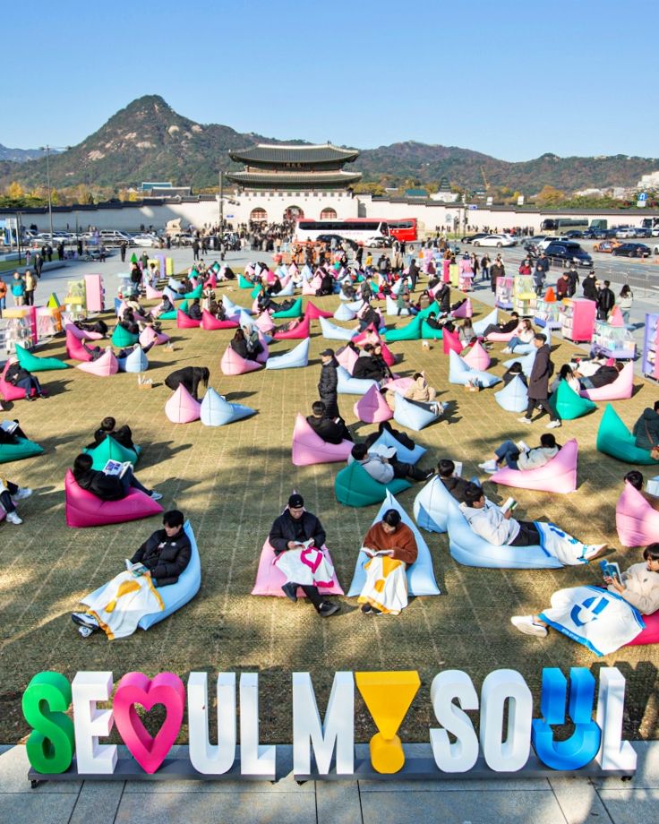 온 가족이 함께! 도시의 거실을 콘셉트로 한 서울광장은 가족, 연인, 친구가 함께 앉아 독서를 즐길 수 있다. 바로 가족 빈백이 새롭게 마련되기 때문. 지나가는 모든 이가 가족처럼 편안하게 다가올 수 있길! 도시의 사람들을 안아주는 공간으로 빠져들 수 있다.