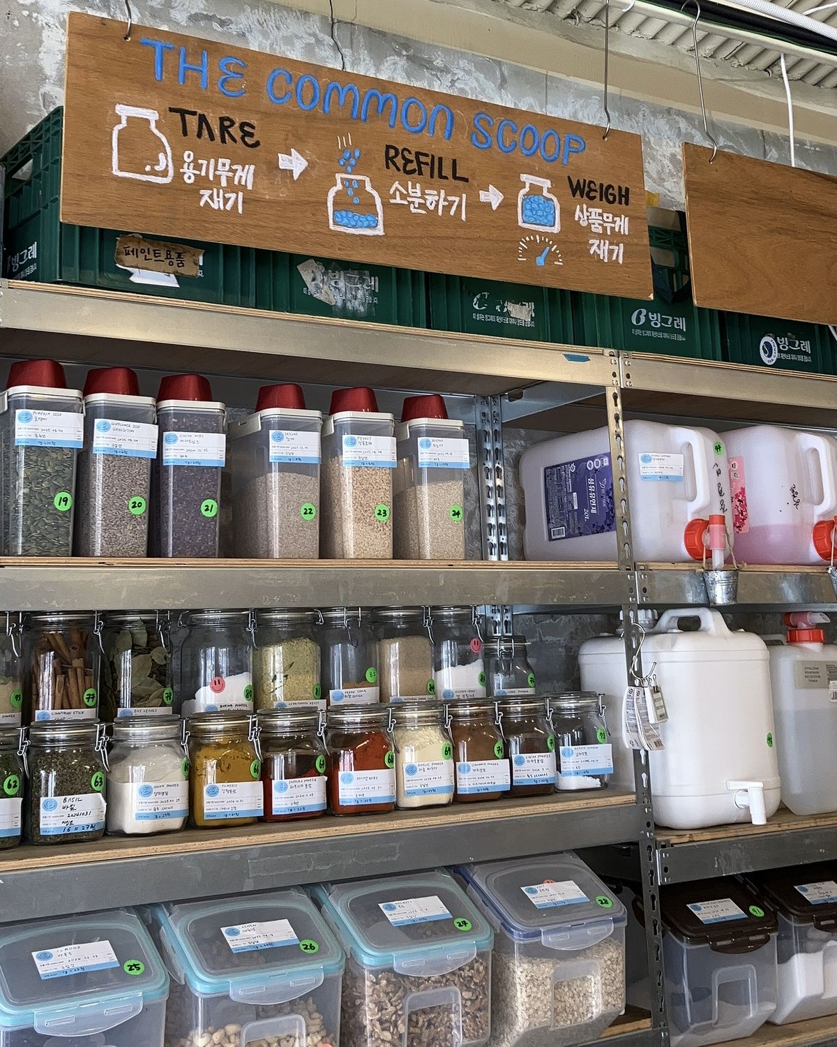 더커먼은 ‘우리는 조금 더 다정할 수 있어요(Mankind is Kind)’를 슬로건으로 지속 가능한 라이프 스타일을 제안하는 공간이다. 비건 레스토랑과 카페, 제로 웨이스트 숍이 한 공간에 구성되어 있다. 동물성 재료 없이 채소만 가지고도 맛있게 즐길 수 있는 메뉴를 제공하며 계절마다 제철 로컬 푸드를 활용한 팝업 메뉴를 선보인다. 봄 한정 메뉴로는 ‘미나리 스파게티’와 ‘미나리 베이글 샌드위치와 스낵’을 맛볼 수 있다. 카페에서는 우유, 버터, 달걀을 사용하지 않고 비정제 천연 원당을 사용한 베이커리가 준비되어 있다. 당연히 모든 메뉴는 다회용기 포장이 가능하다. 망설이지 말고 ‘용기 내’보자.