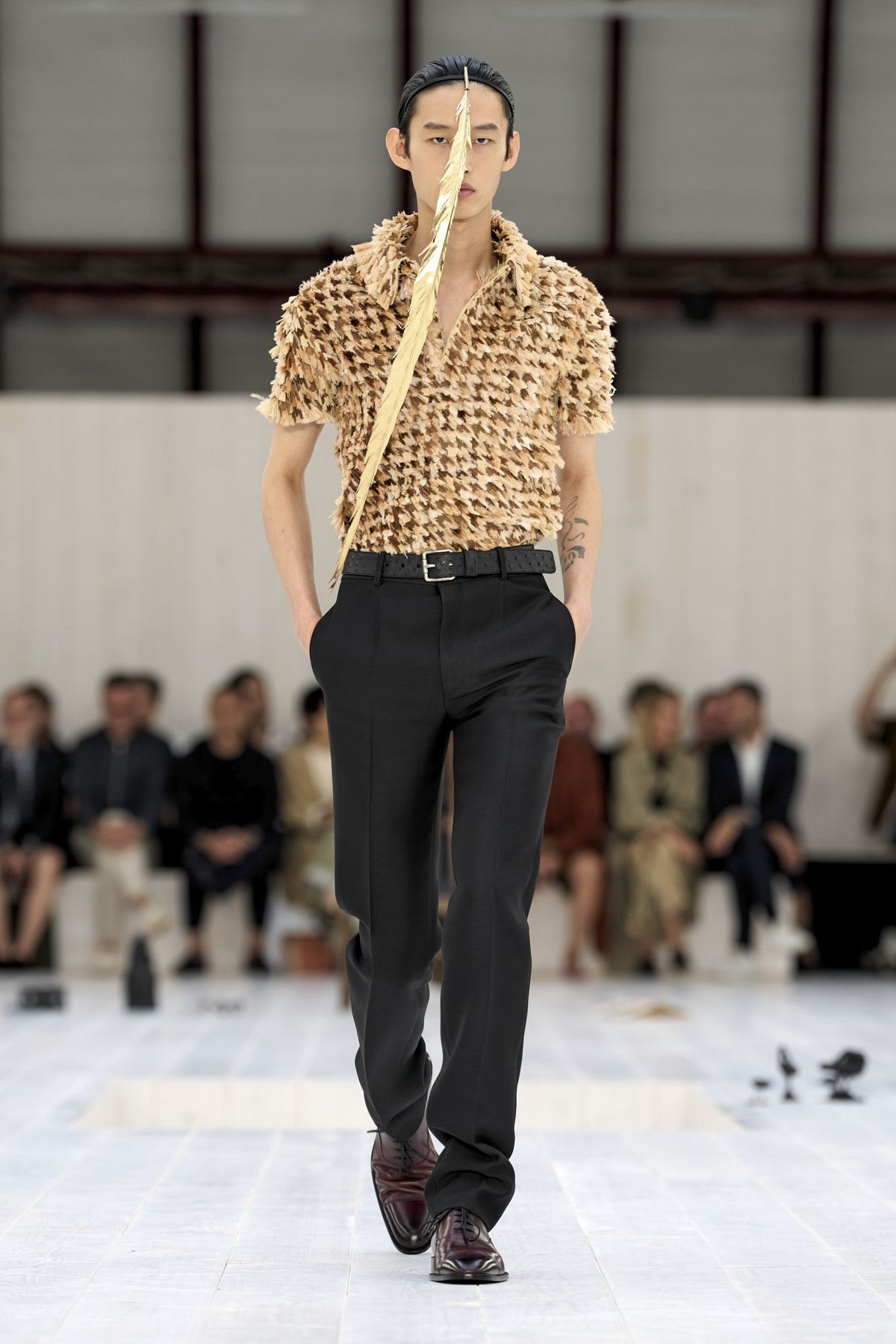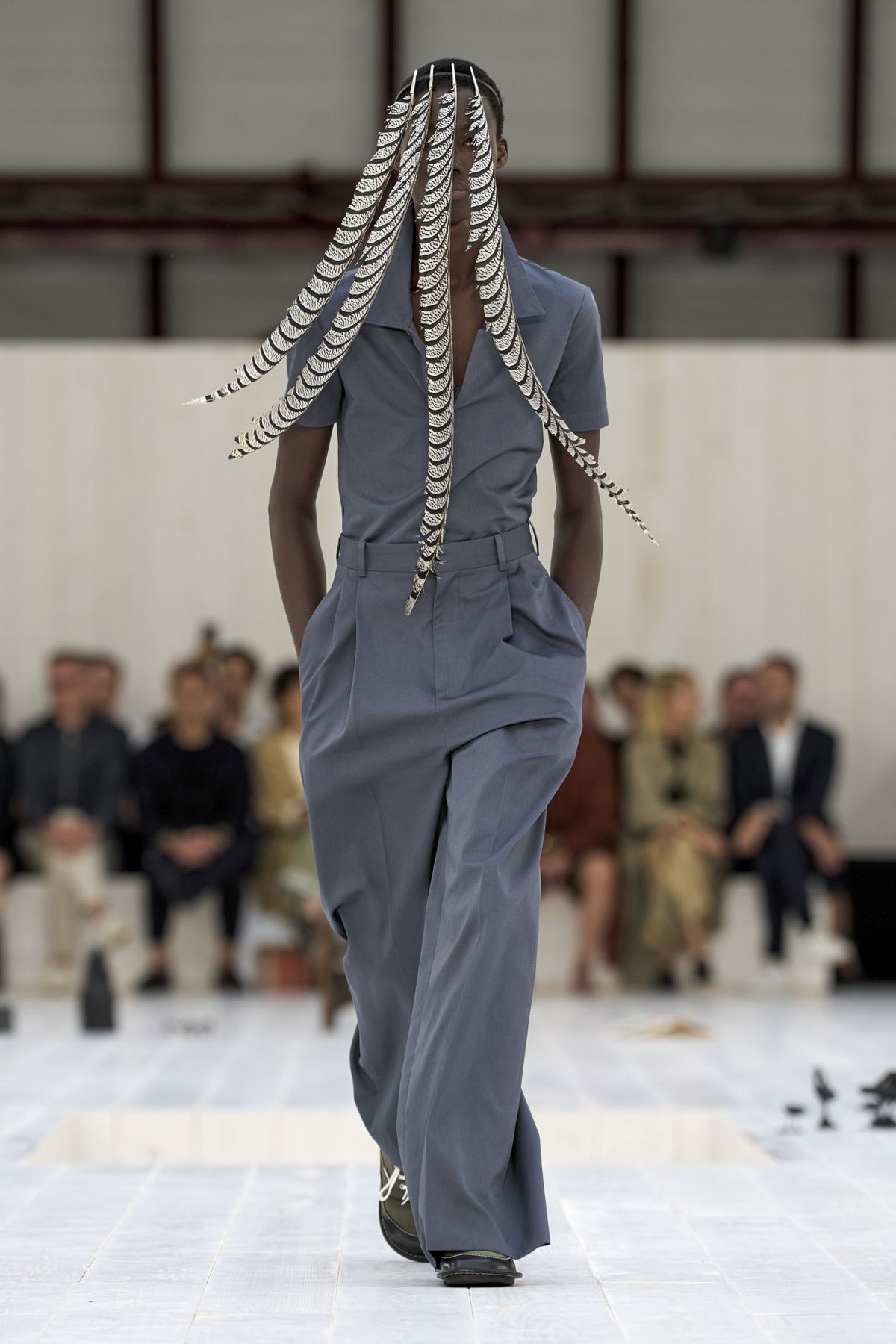 한 마리의 새를 연상케 하는 깃털 디테일이 돋보인 로에베 쇼에는 한국을 대표해 이종석이 참석했다. 박시한 실루엣의 그레이 수트와 바이커 부츠를 매치한 그의 감각적인 스타일링은 100점 만점에 100점!