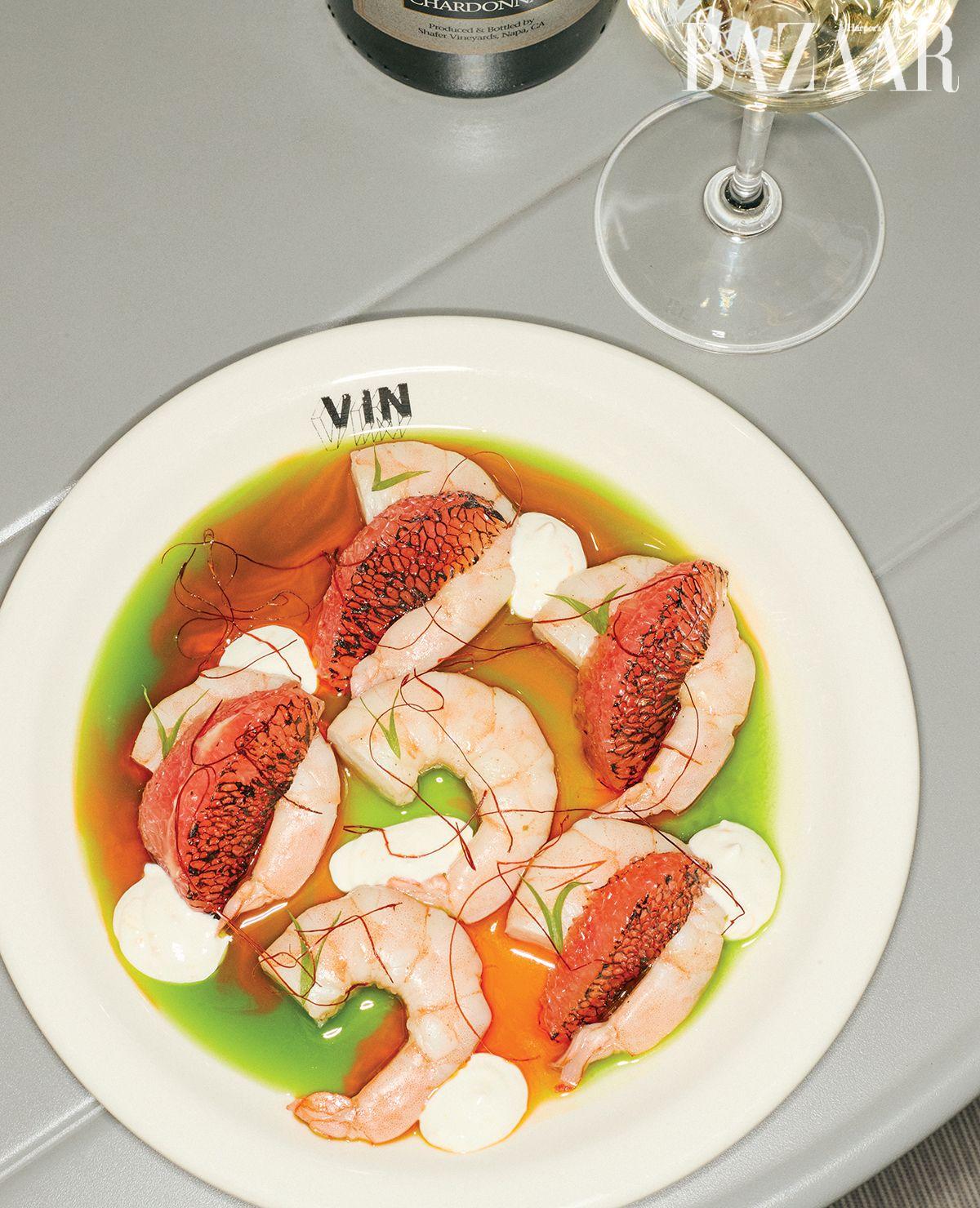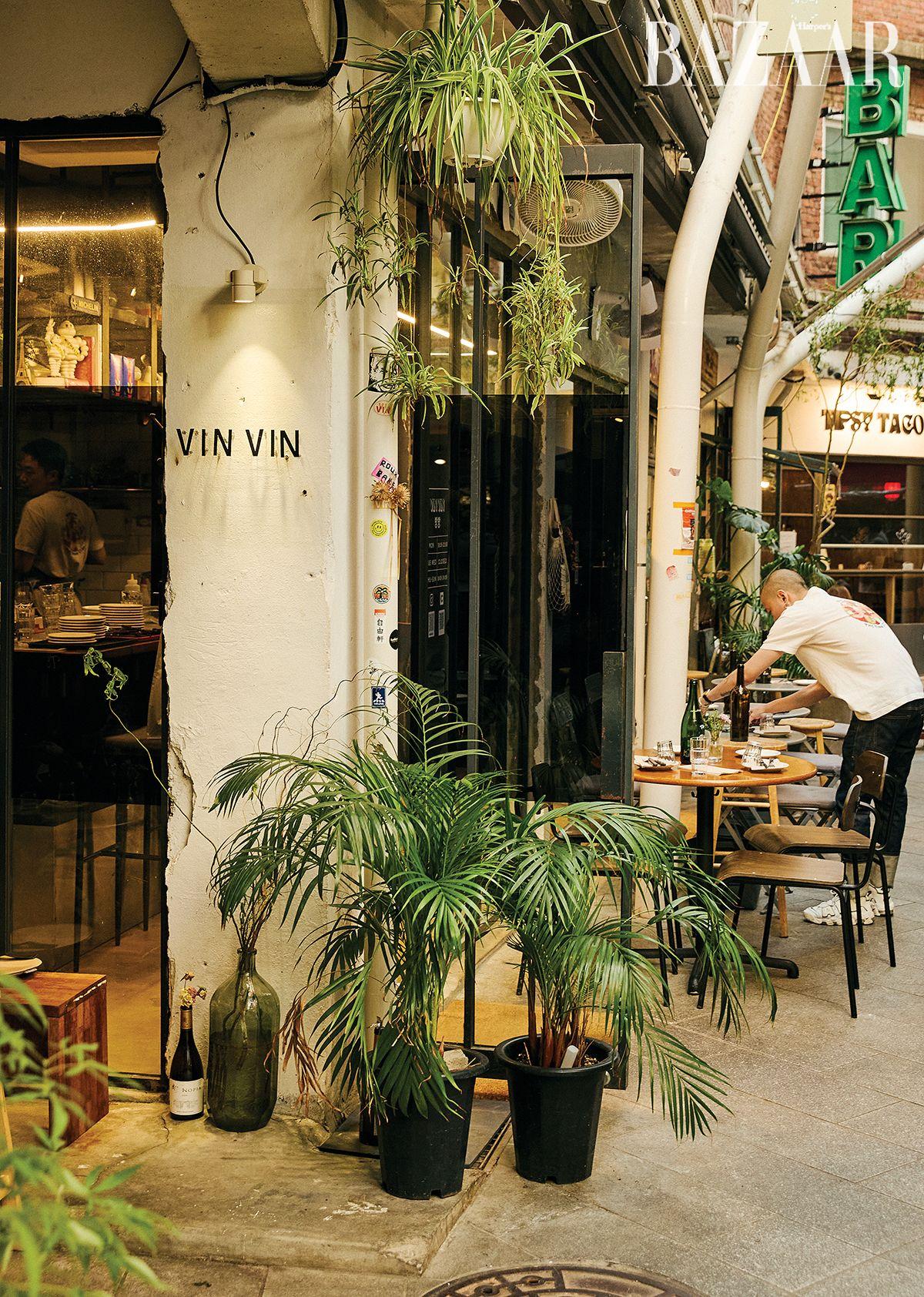 “한남동에는 팬시한 미쉐린 레스토랑이 많지만 해외에서 한국을 방문한 갤러리 스태프들이 가장 좋아하는 곳은 바로 여기죠.” 김경미 큐레이터는 신흥시장 안의 방방을 소개하며 캐주얼하면서도 세심한 요리, 와인이 완벽하게 어우러지는 공간이라고 덧붙였다. 방방은 신흥시장이 지금의 북적거리는 모습을 갖추기 전인 2022년에 자리를 잡았다. 뉴질랜드에서 태어난 이기욱 셰프는 호주에서 고든 램지가 연 ‘메이즈 멜번’을 거쳐 런던과 홍콩 등 여러 나라의 미쉐린 스타 레스토랑을 경험하고 코로나 시기 잠시 서울에 들어왔다 운명처럼 자신의 식당을 차렸다. 골목 한편에서 커피를 마시다 문득 본인이 생활했던 파리의 마레지구나 홍콩 거리에 온 듯한 편안함을 느끼는 장소를 발견하고 즉흥적으로 시작한 것. 방방에서는 셰프의 여정이 쌓인 세심한 미식을 즐길 수 있다. 낮은 온도로 수비드한 새우에 대파기름과 고추기름을 끼얹고 크림과 자몽을 올린 시그너처 메뉴 프라운은 꼭 맛봐야 하는 음식이다. 새우의 생소한 식감과 어울릴 것 같지 않은 재료의 온화한 조화가 눈을 번쩍 뜨이게 한다. 와인 바의 본분에 맞게 1백여 종이 넘는 와인 리스트와 셰프만의 프라이빗 리스트도 준비되어 있지만, 페어링보다는 먹고 싶은 음식과 와인을 즐기도록 하는 자유로운 분위기가 흐르는 곳이다.