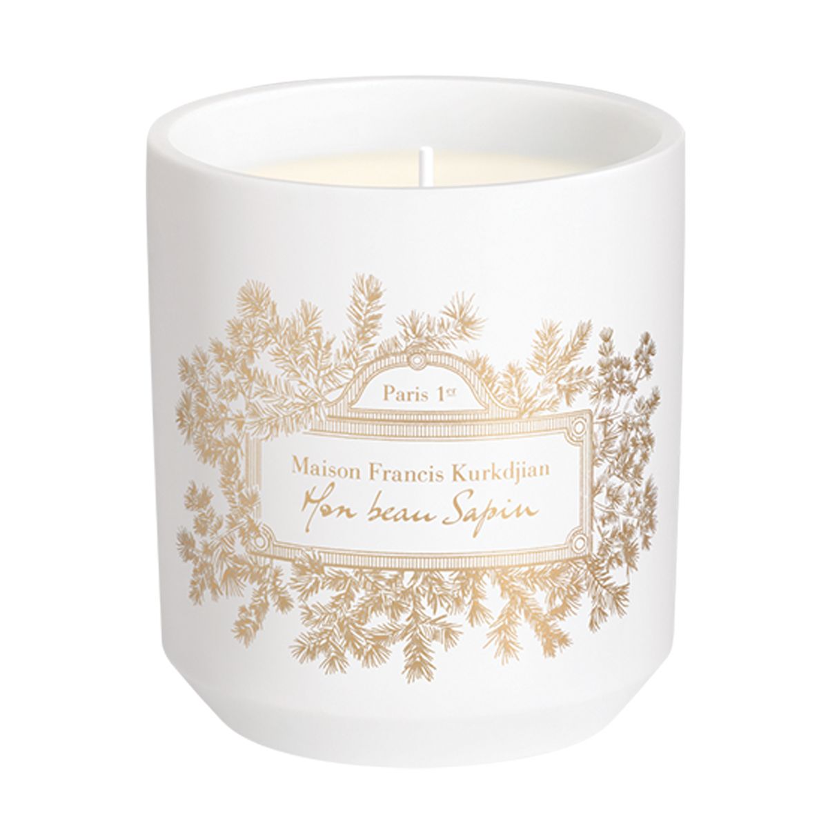 Maison Francis Kurkdjian 2024 홀리데이 컬렉션 몽 보 사뺑 캔들 전나무의 시원함과 샌들우드의 포근함으로 전통적인 크리스마스 트리를 구현했다. 눈처럼 하얀 화이트 도자기에는 메종 프란시스 커정 부티크가 위치한 파리 알제르 거리의 도로 표지판을 골드로 새겨 넣었다. 16만7천원.