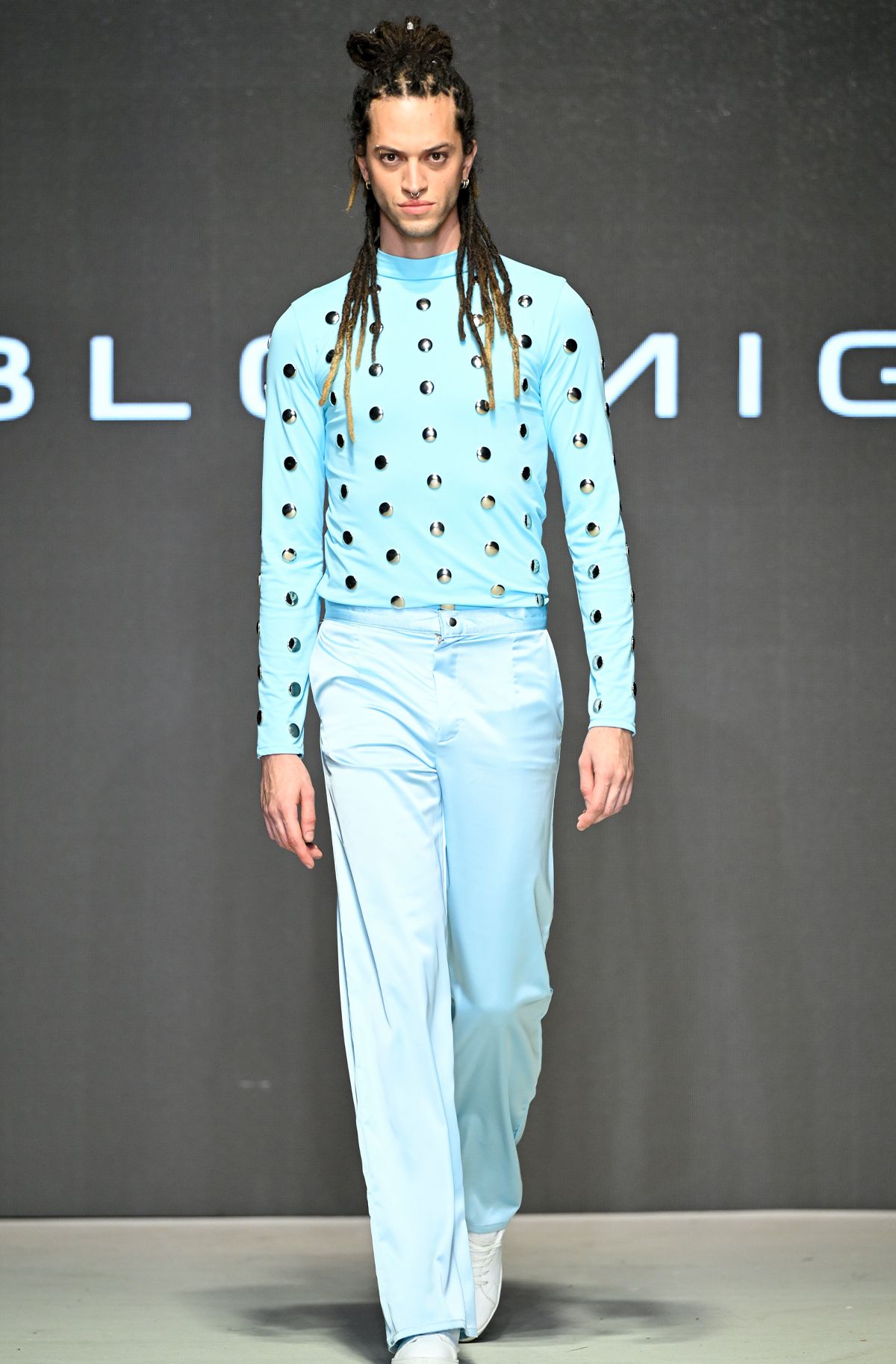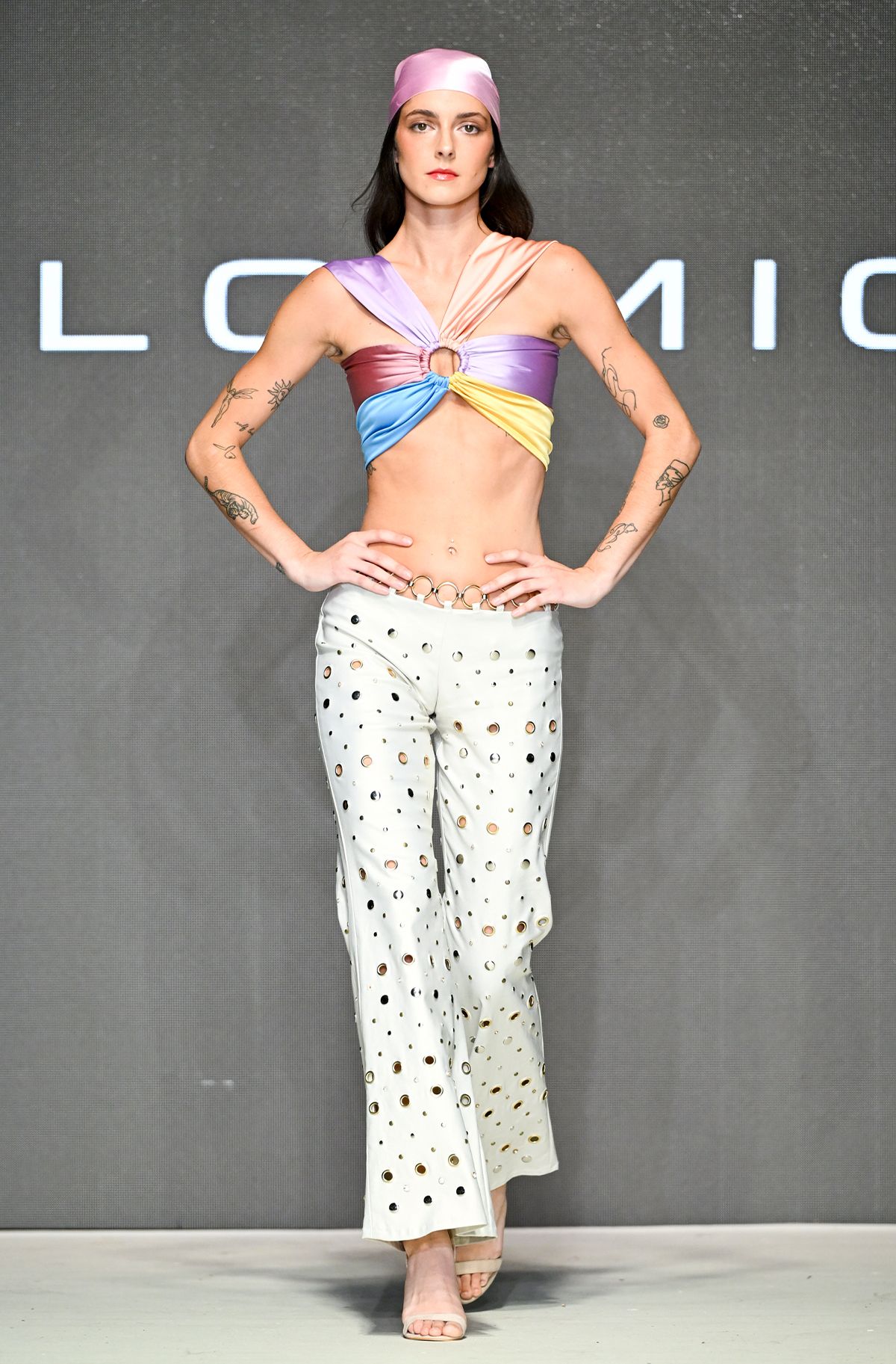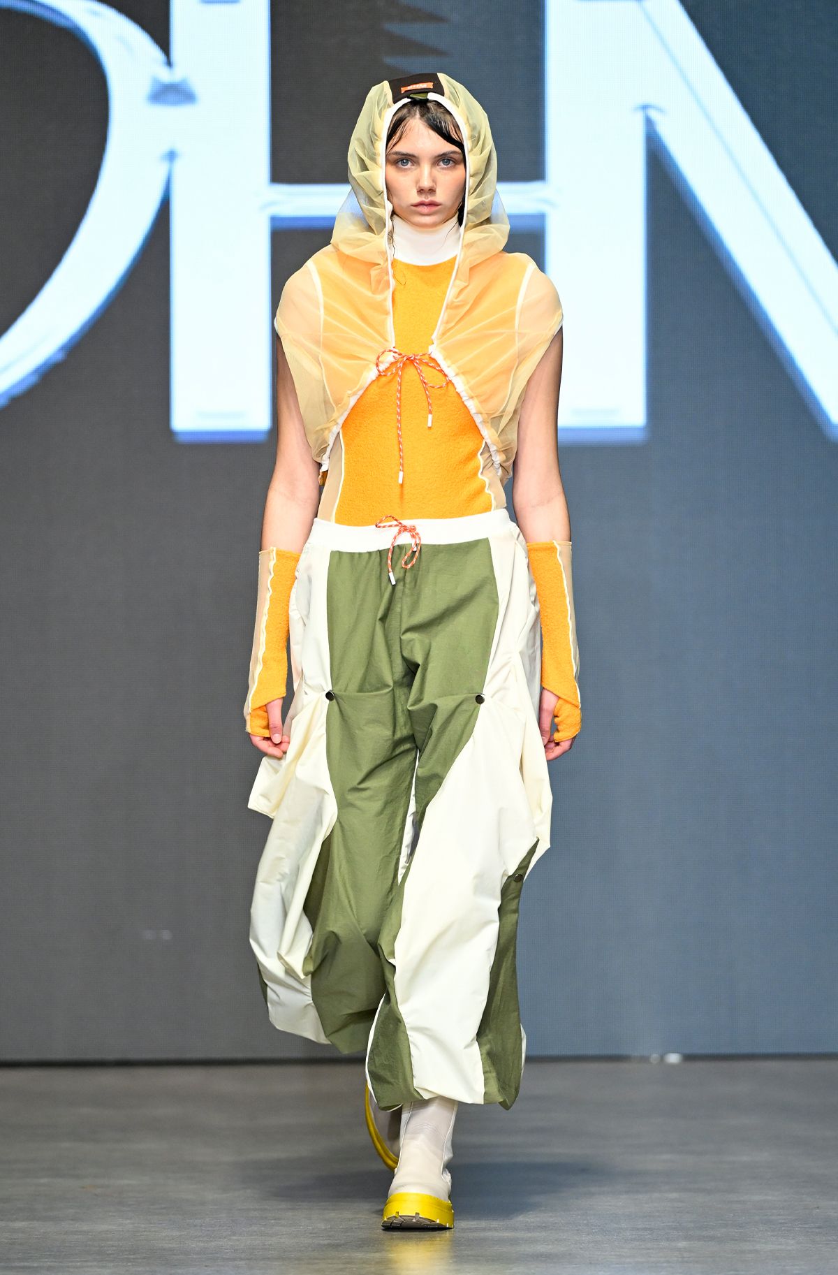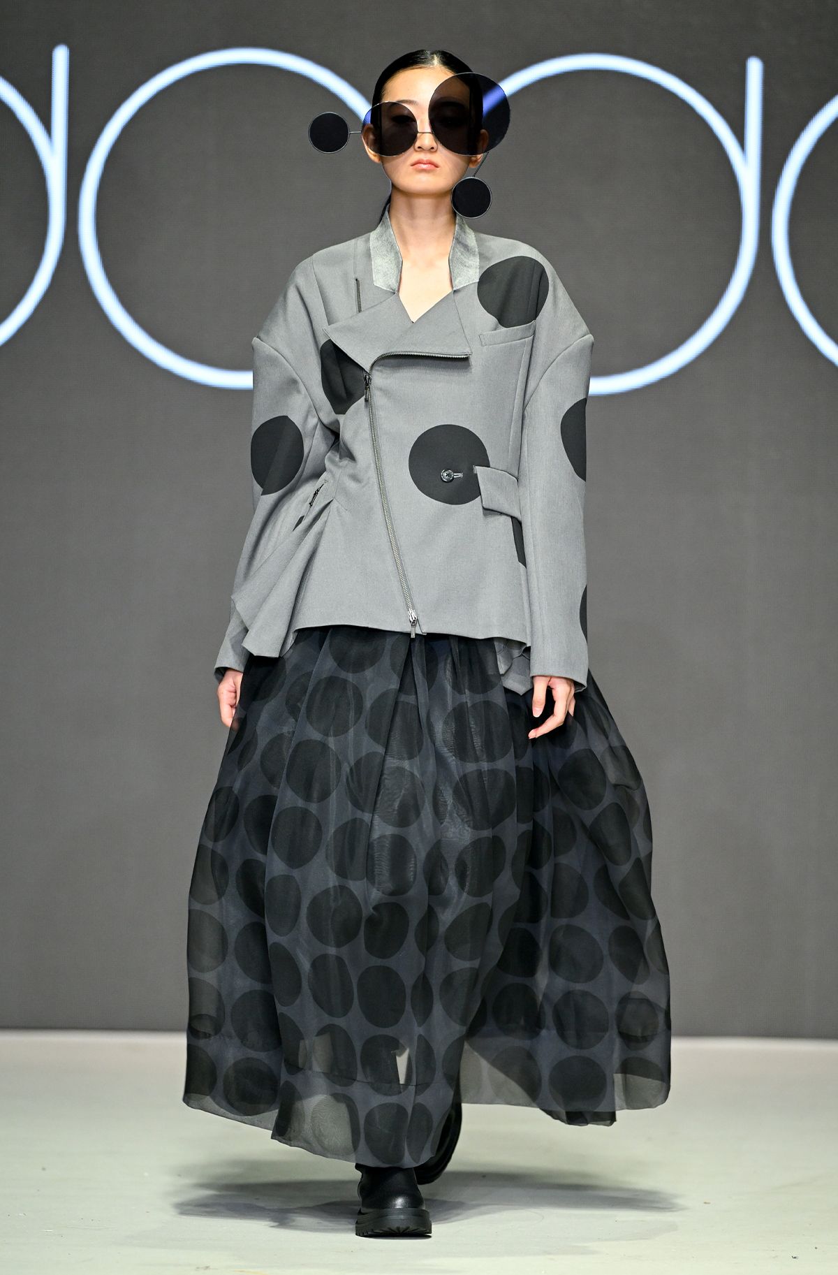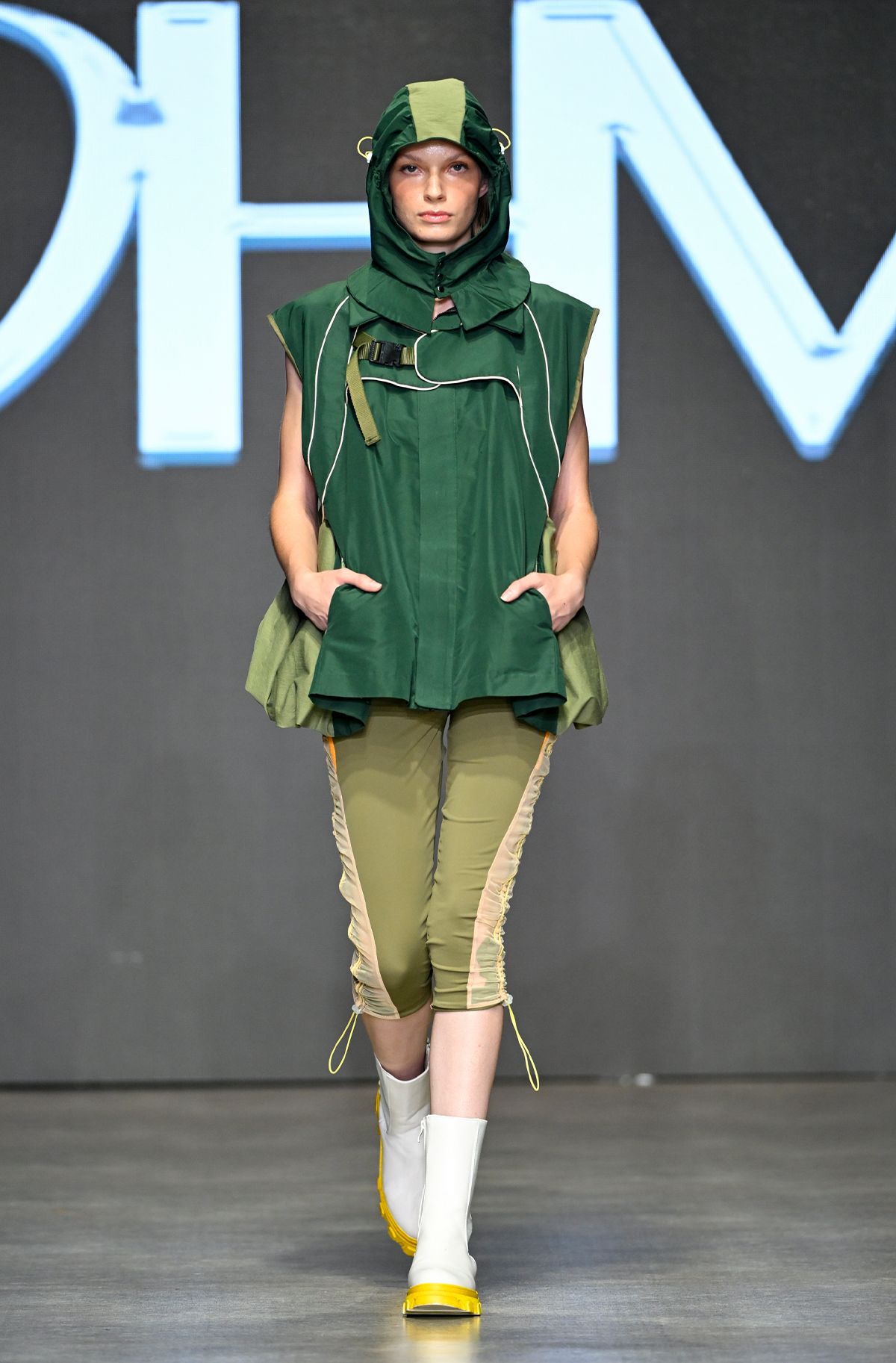 예측 불가한 변덕스러운 날씨와 복잡한 지하철에서 겪는 불편함이라는 흥미로운 테마로 런웨이를 꾸민 옴(OHM). 일상 속에서 마주하는 불편한 순간을 구겨지고 젖은 듯한 실루엣의 옷으로 표현했고, 이를 기능성을 갖춘 스타일리시한 룩으로 풀어내 찬사를 받았다. 디자이너 장다영은 ‘새로운 지속 가능성’을 바탕으로 변형 가능한 의상 구조를 적용하여 실용성과 패셔너블한 요소를 조화롭게 연결했다.