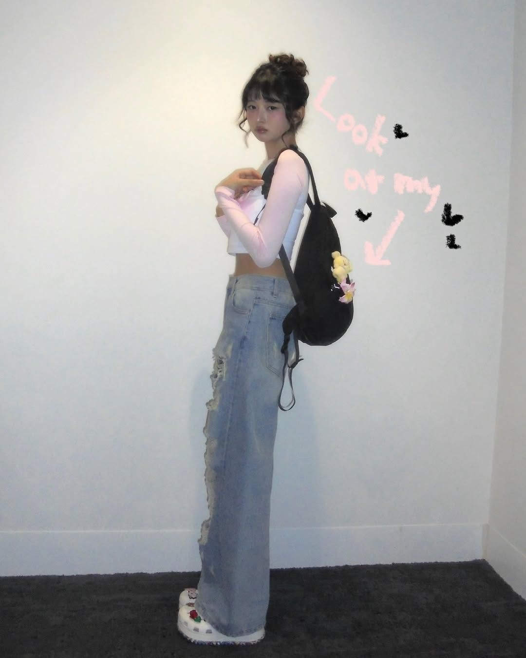 사진 꾸미기, 이른바 ‘사꾸’ 장인으로 불리는 레이는 각양각색 키 링을 자유분방하고 화려하게 장식한 ‘백꾸’ 스타일 즐기기에도 여념이 없다. 요즘 젠 Z 사이에서 쉬지 않고 유행 중인 다양한 캐릭터의 키 링을 주렁주렁 장식한 백팩과 미니 백은 레이의 데일리 스타일에서 없어서는 안 될 아이템. ‘사꾸’와 ‘백꾸’ 장인으로 새로운 유행을 개척해가는 감각은 늘 화제를 모은다.