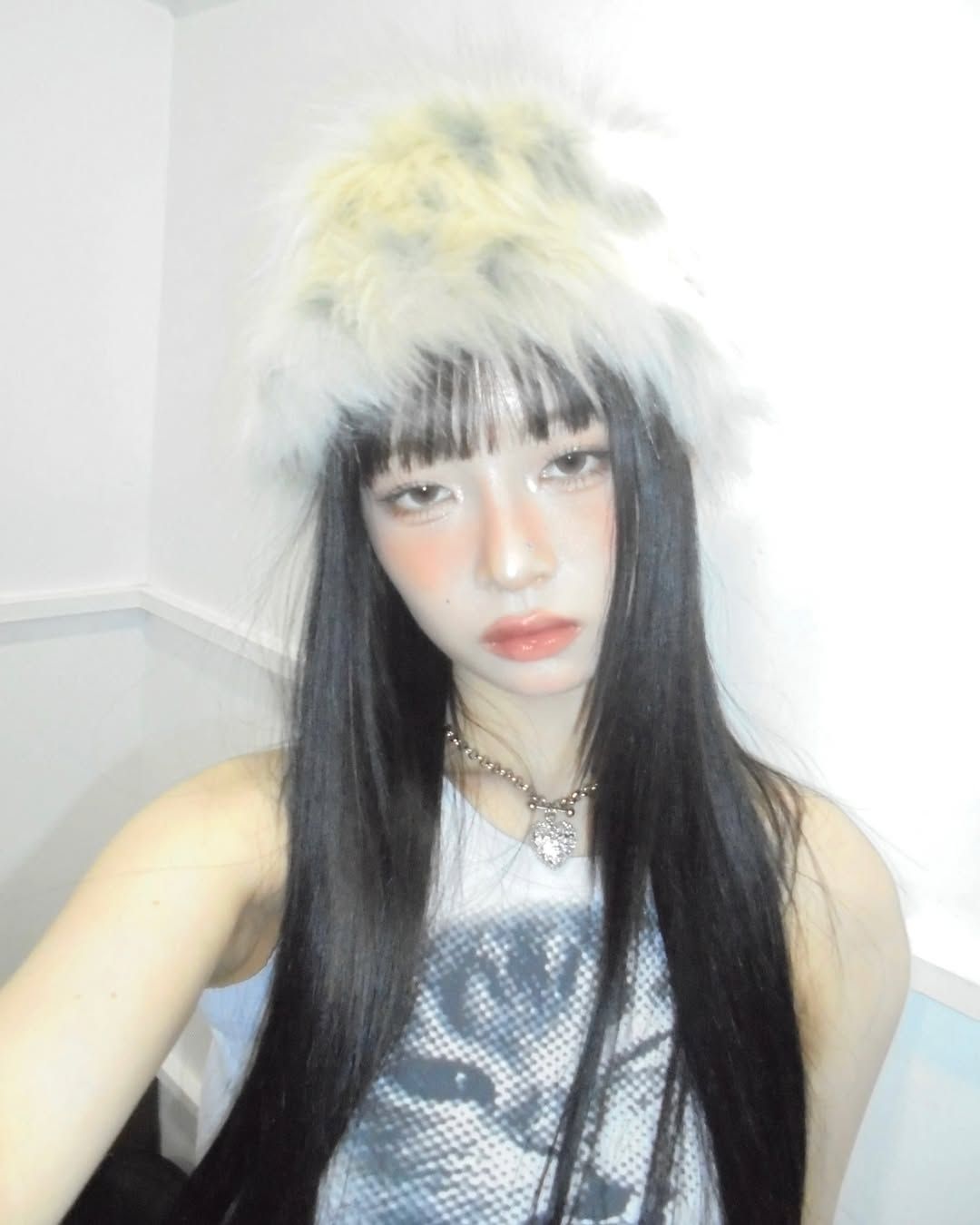 헤어 핀, 헤어 밴드 등의 액세서리와 함께 다채로운 디자인의 모자를 자유롭게 즐기기로 유명한 레이. 동화 속에서 등장한 듯 소녀감성이 물씬 풍기는 레이스 소재의 헤드 스카프부터 귀여운 토끼 귀 모양이 장식된 니트 비니, 90년대 뮤직비디오를 보는 듯 대범한 Y2K 분위기를 전하는 털 모자까지 그야말로 ‘모자 박람회’라 할만하다.