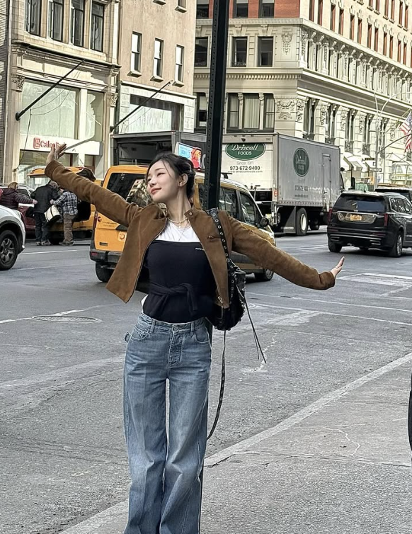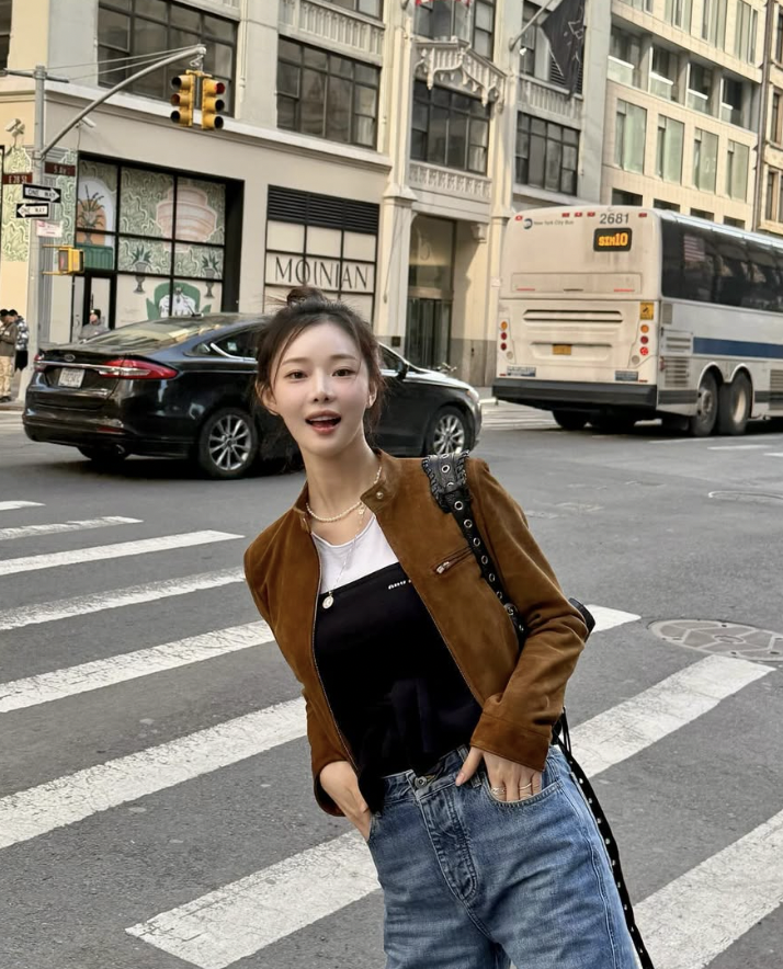 최근 25 F/W 뉴욕 패션위크에 처음으로 참석한 이시안. 그녀의 인기를 실감할 수 있는 컬렉션 참석. 뉴욕에서 그녀가 뽐낸 스트리트 패션? 화이트 톱에 블랙 니트 튜브톱을 레이어링 해 전체적인 룩에 포인트를 더했다. 여기에 최근 트렌드 아이템으로 꼽히는 스웨이드 소재의 미우미우 브라운 숏 재킷에 와이드 데님 팬츠로 부드러우면서도 세련된 무드를 연출했다. 마지막으로 발렌시아가 르카골 메신저 백을 어깨에 메고 시크함 한 스푼 까지!
