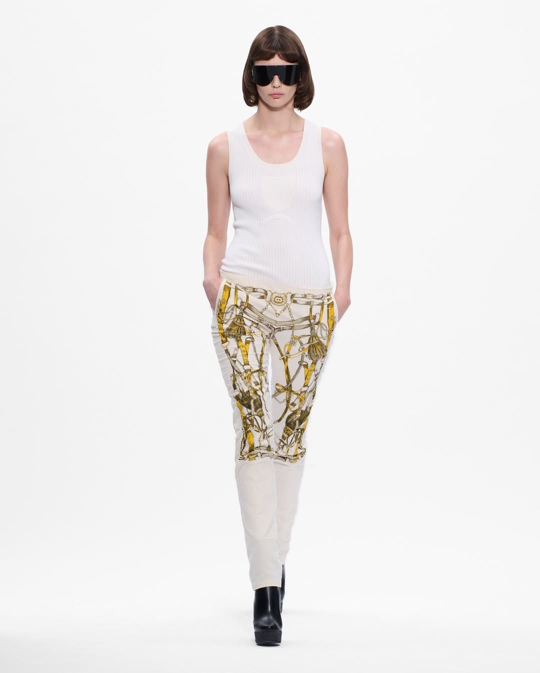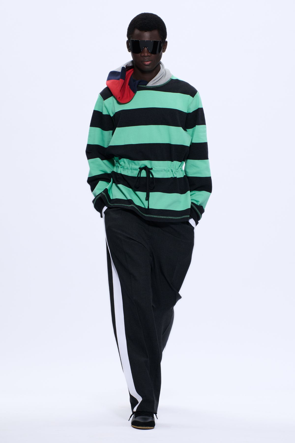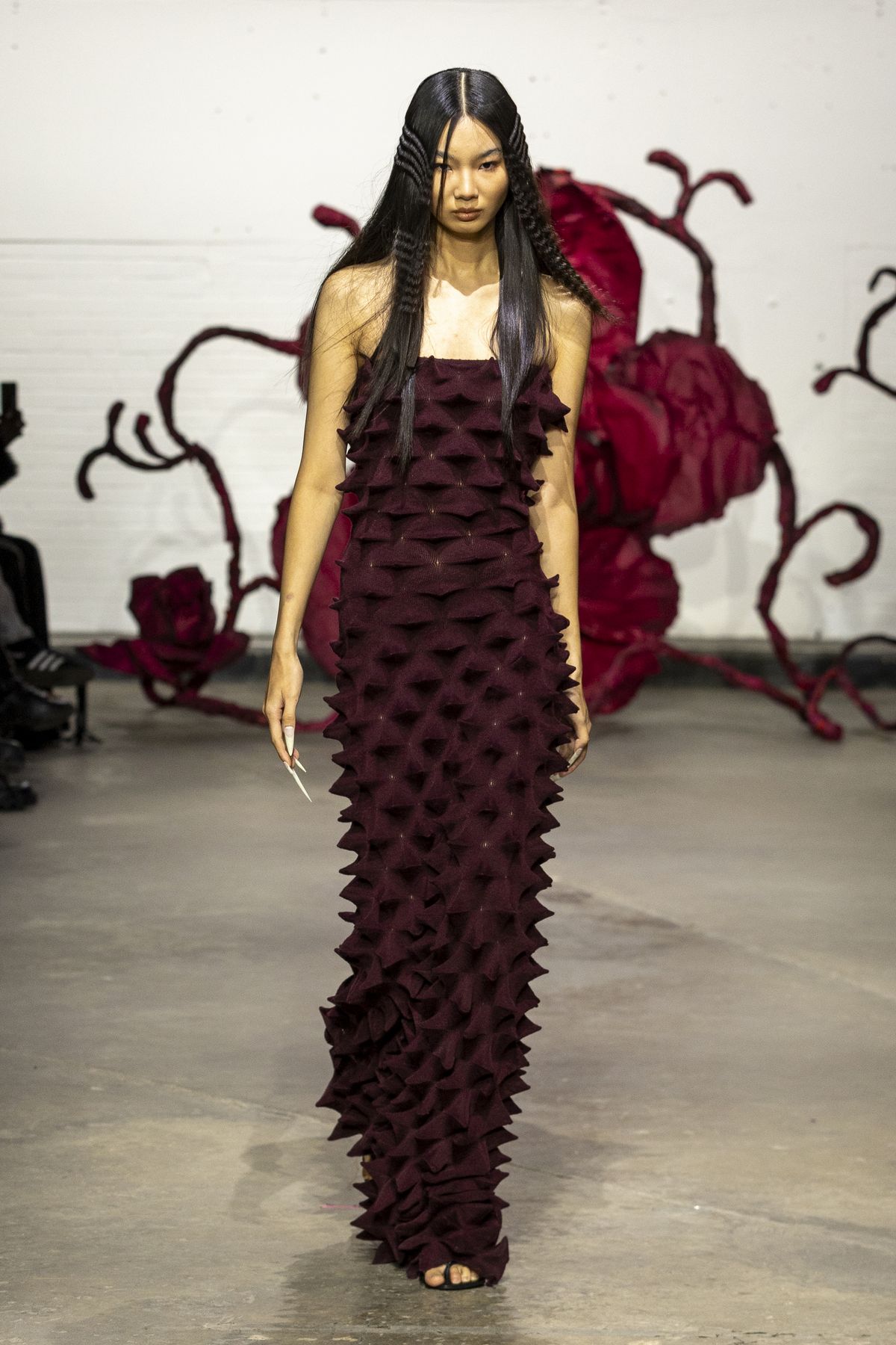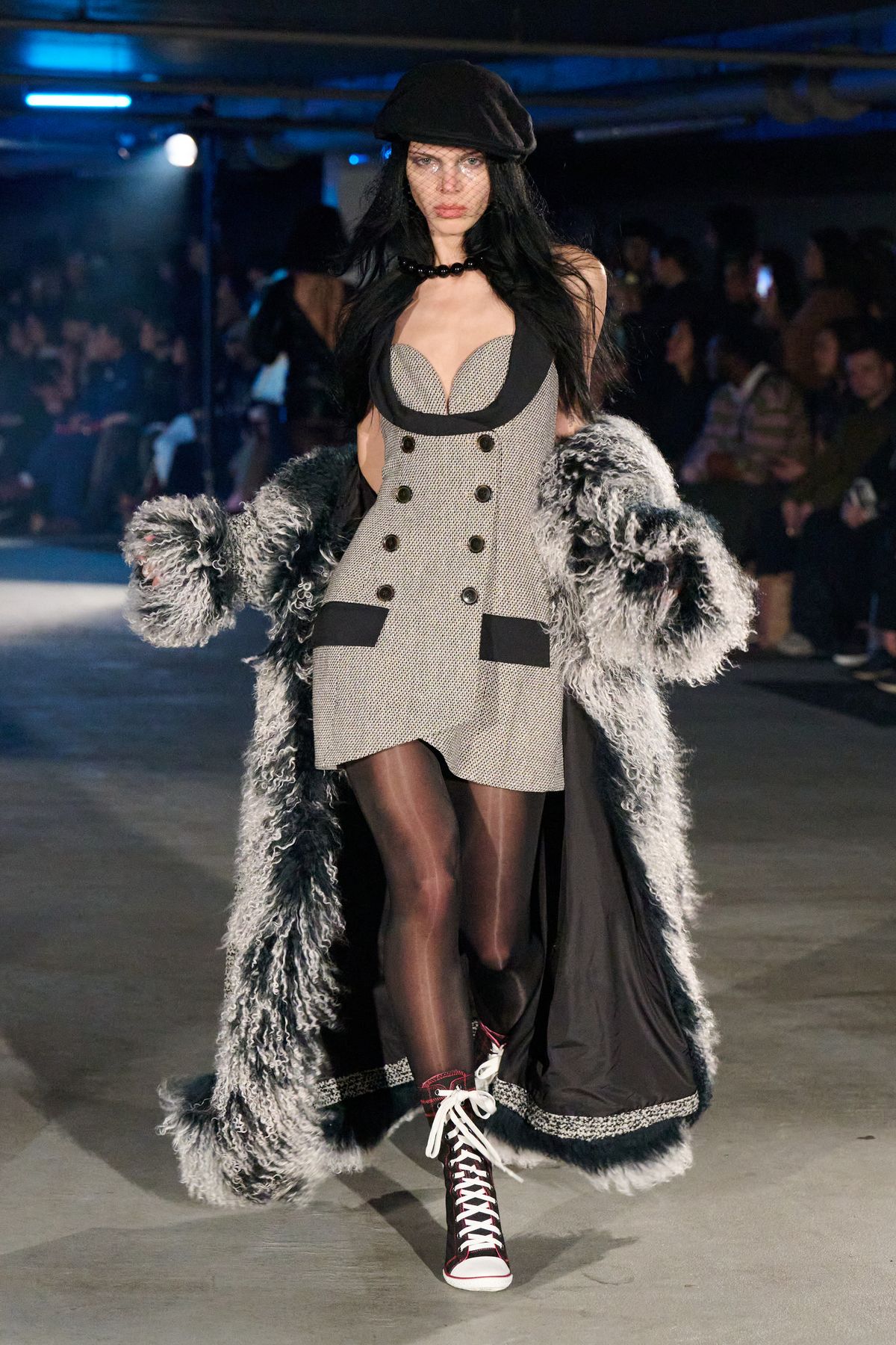 독창적인 스파이크 니트와 실험적인 디자인으로 매 시즌 강렬한 존재감을 드러내는 쳇 로. 이번 컬렉션에서 그는 다시금 자신의 뿌리로 돌아갔다. 중화풍(Chinoiserie)에 스며든 서구적 시선을 되돌아보며 익숙한 이미지를 낯설게 비튼다. 과장된 타이거 패턴, 폭발하듯 찣긴 실루엣 속 용의 형상. 그 틈새로 피어난 작은 꽃들이 거칠고 역동적인 무드와 대조를 이루며 독특한 균형을 만든다. 문화적 고정관념을 뒤흔들고, 과거와 현재, 동양과 서양의 경계를 흐리는 과정에서 쳇 로 특유의 실험적 감성이 빛을 발한다. @chet__lo