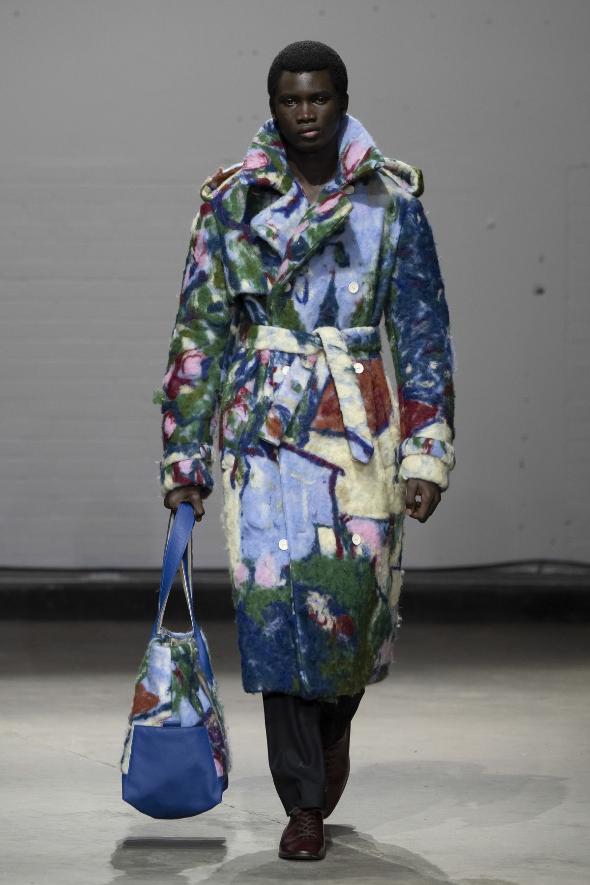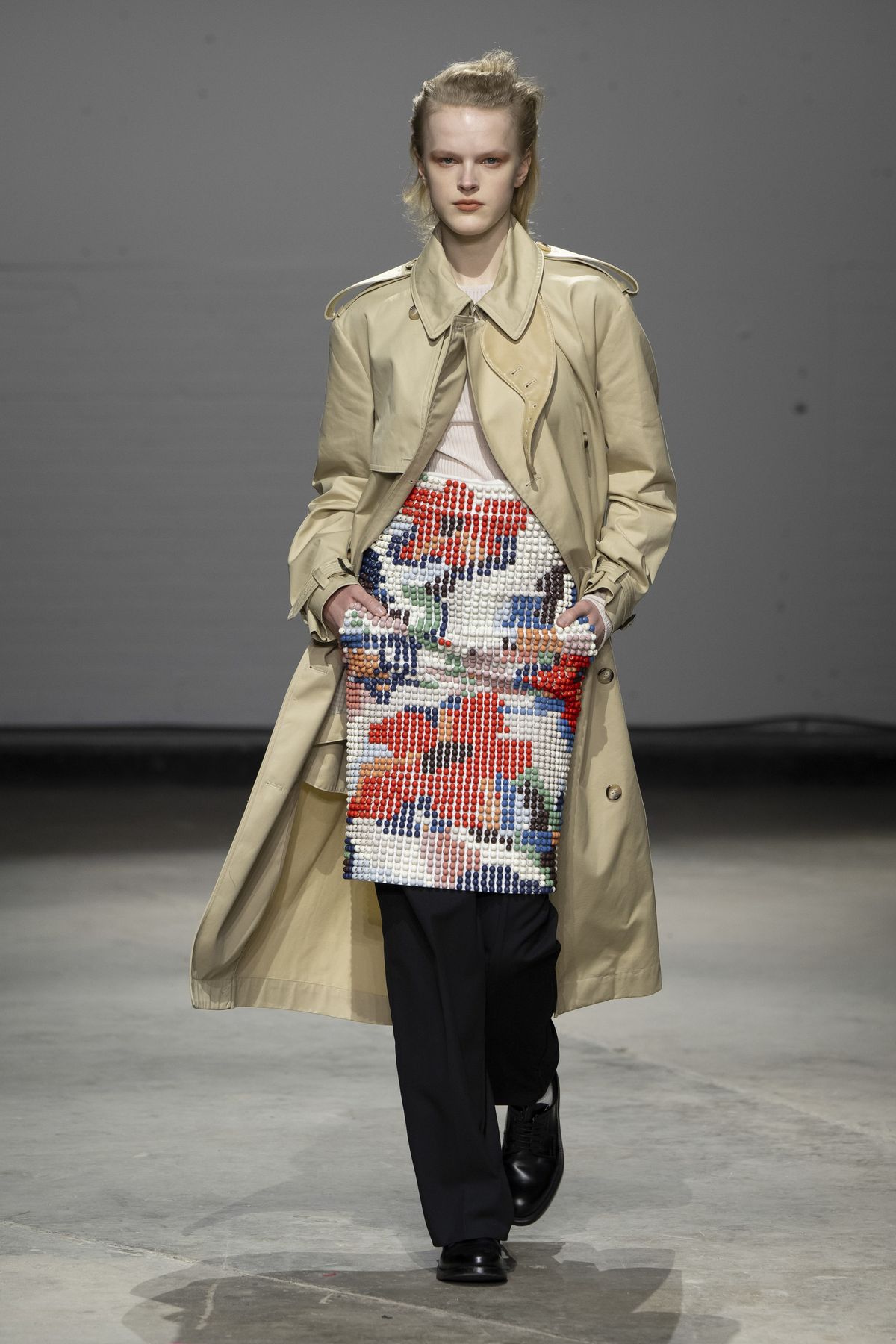 클래식한 공식을 귀엽게 풀어낼 방법은 무엇일까? 이번 컬렉션은 그 질문에 선명한 답을 내놓았다. 트렌치코트, 더플코트, 체크무늬 같은 전통적인 브리티시 스타일이 어딘지 색다르게 느껴지게 만든다. "매너가 사람을 만든다"는 신사적 옷차림에 스토키 달리 특유의 위트를 찾는 재미가 쏠쏠하다. 카디건에 프린티드 와펠이나 브로치가 달려 있고, 붓으로 거침없이 그려낸 강아지나 여인 페인팅이 시선을 사로잡는다. 몽글몽글한 펠트 소재는 숨겨진 동심을 자극하며 포근한 온기를 전한다. 1920년대 스코틀랜드 컬러리스트들의 작품에서 영감을 받은 나무 비즈 디테일과 전원 풍경도 큰 볼 거리! 그가 전하는 이야기는 언제나 그렇듯 익숙하지만 새롭고, 따뜻하면서도 생동감 넘친다. @ss_daley