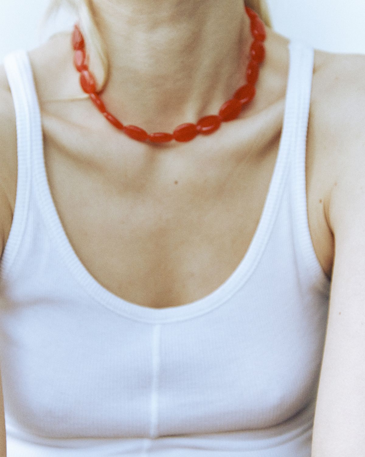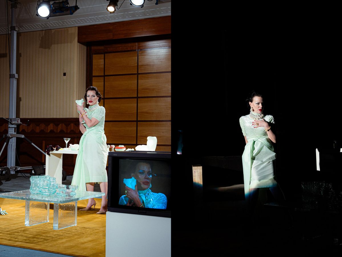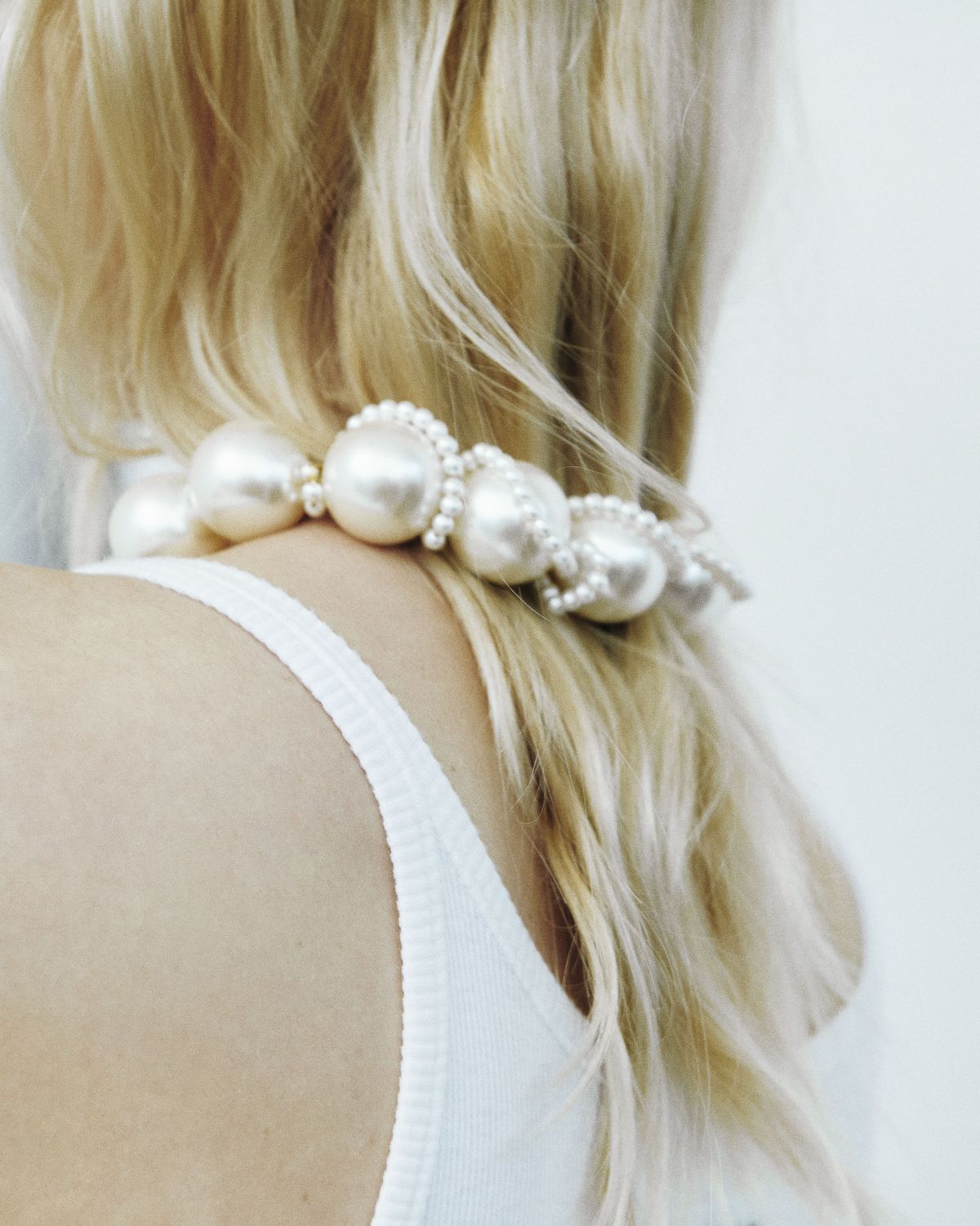 매 시즌 색다른 퍼포먼스를 선보여 온 주얼리 브랜드, 컴플리티드웍스. 이번 시즌에는 배우 데비 마자르가 짧은 단막극을 꾸몄다. 홈쇼핑 쇼호스트로 등장한 그는 우아하면서도 직설적인 태도로 관객을 맞이했다. 아무렇지 않게 매대 앞에 놓인 주얼리를 판매하다, 갑자기 독백을 시작한다. "세상에, 나 화장실 가고 싶어. 예전엔 이렇게 자주 안 갔는데 말이야. 젊었던 1980년대엔 한 달에 두 번만 갔다니까!" 과장된 유머와 향수 어린 회상 속에서 허구와 진실이 뒤엉킨 메시지를 재치 있게 전달했다. 이중적인 주인공의 태도에서 새로운 컬렉션의 힌트를 얻을 수 있다. 단단한 진주는 움직일 때마다 흔들리며 예상치 못한 변화를 드러내고, 차분한 색감 속에서 선명한 레드 컬러가 눈길을 사로잡는다. 익숙한 틀을 비틀어 낯선 감각을 만들어 내는 컴플리티드웍스의 주얼리는 미묘한 어긋남 속에서 새로운 균형을 찾아낸다. @completedworks