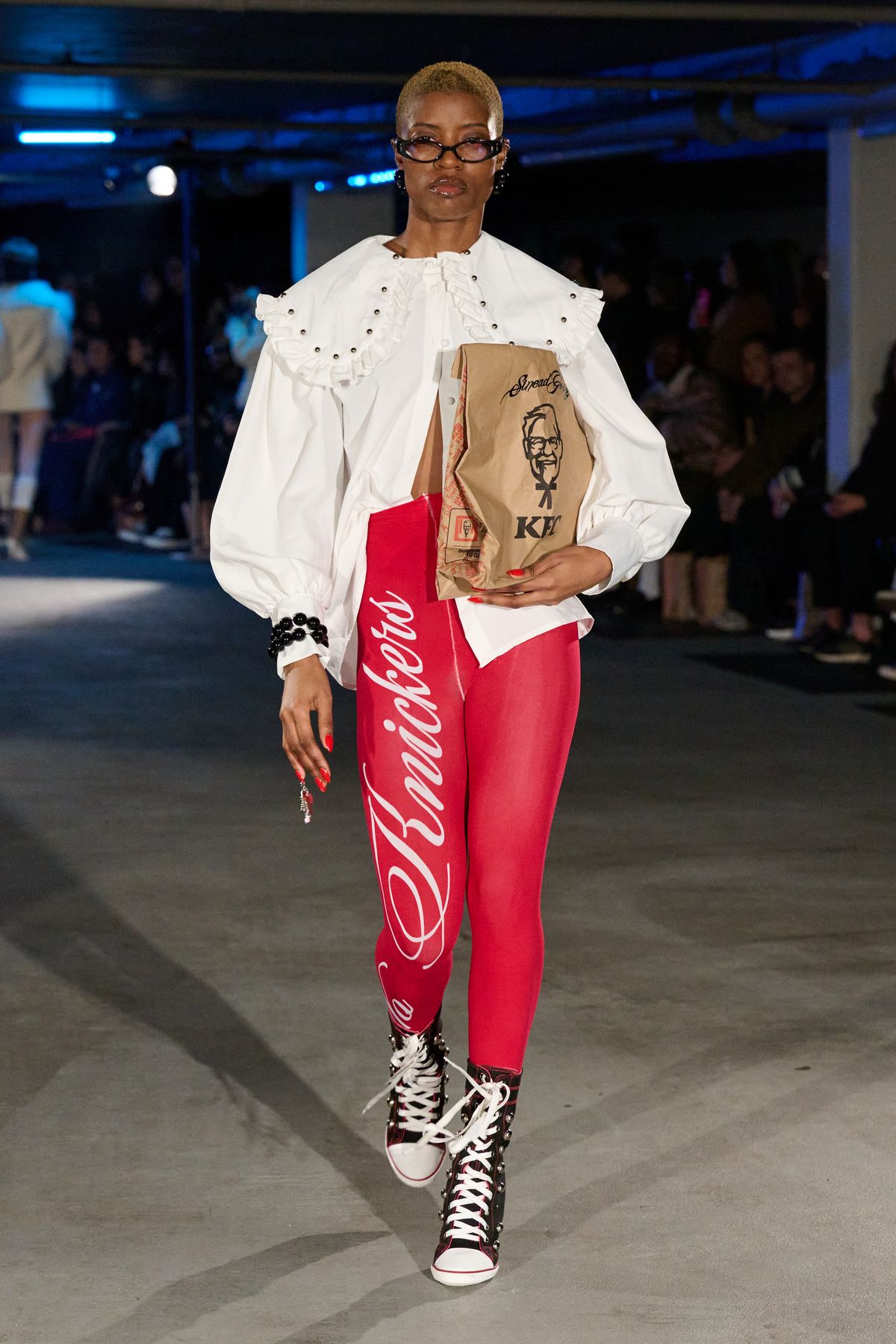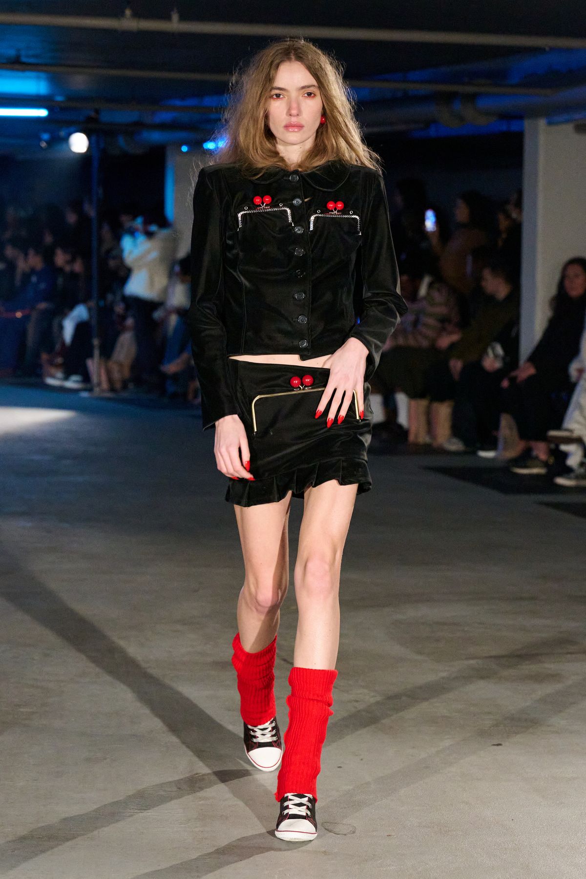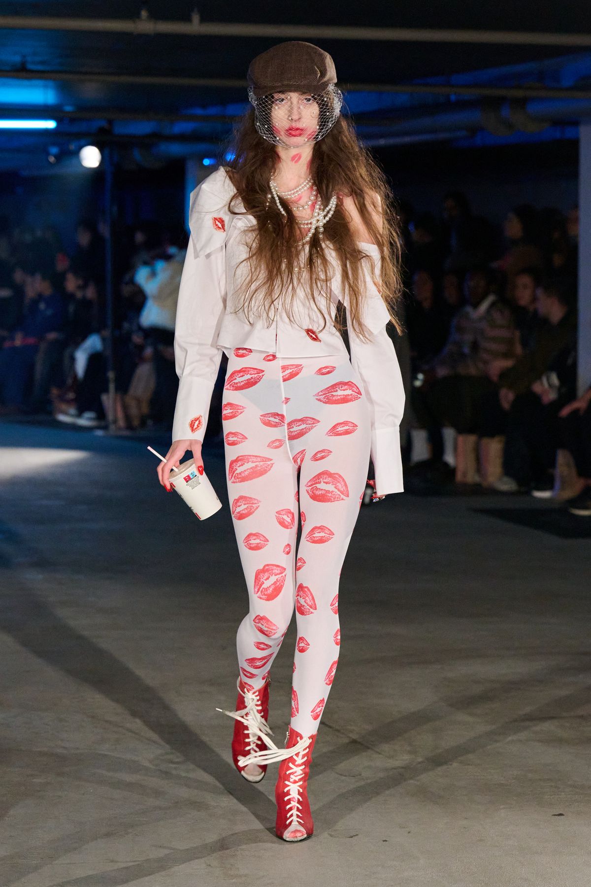 수많은 쇼가 연이어 펼쳐지는 패션위크에서 ‘자이언트 케이크’ 초대장을 받다니, 가뭄에 단비 같은 순간이 아닌가. 스테판 쿡의 디자이너 스테판과 제이크는 이번 시즌, 거창한 런웨이 대신 친밀한 공간으로 우리를 초대했다. 무려 10L의 크림과 잼으로 거대한 아몬드 체리 케이크와 함께! 이들은 이번 시즌 가장 애정하는 룩을 직접 소개했다. 광목에 실크 프린트 조각을 덧댄 팬츠와 한 줄 한 줄 커팅해 유연성을 살린 레더 탱크톱이 바로 그 주인공이다. 형식적인 틀을 벗어난 프레젠테이션에서 ‘런던다운’ 자유분방한 에너지를 한층 선명하게 드러냈다. @stefan_cooke