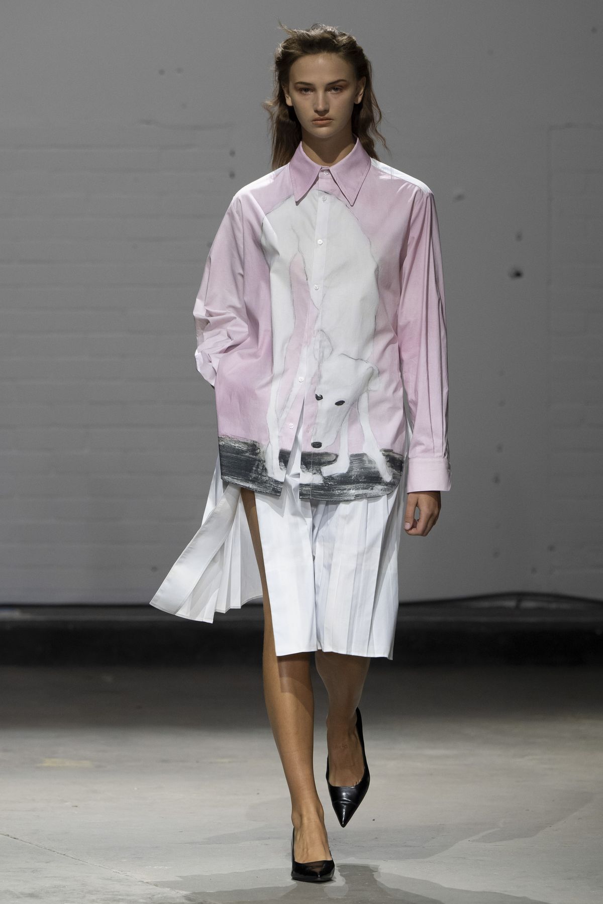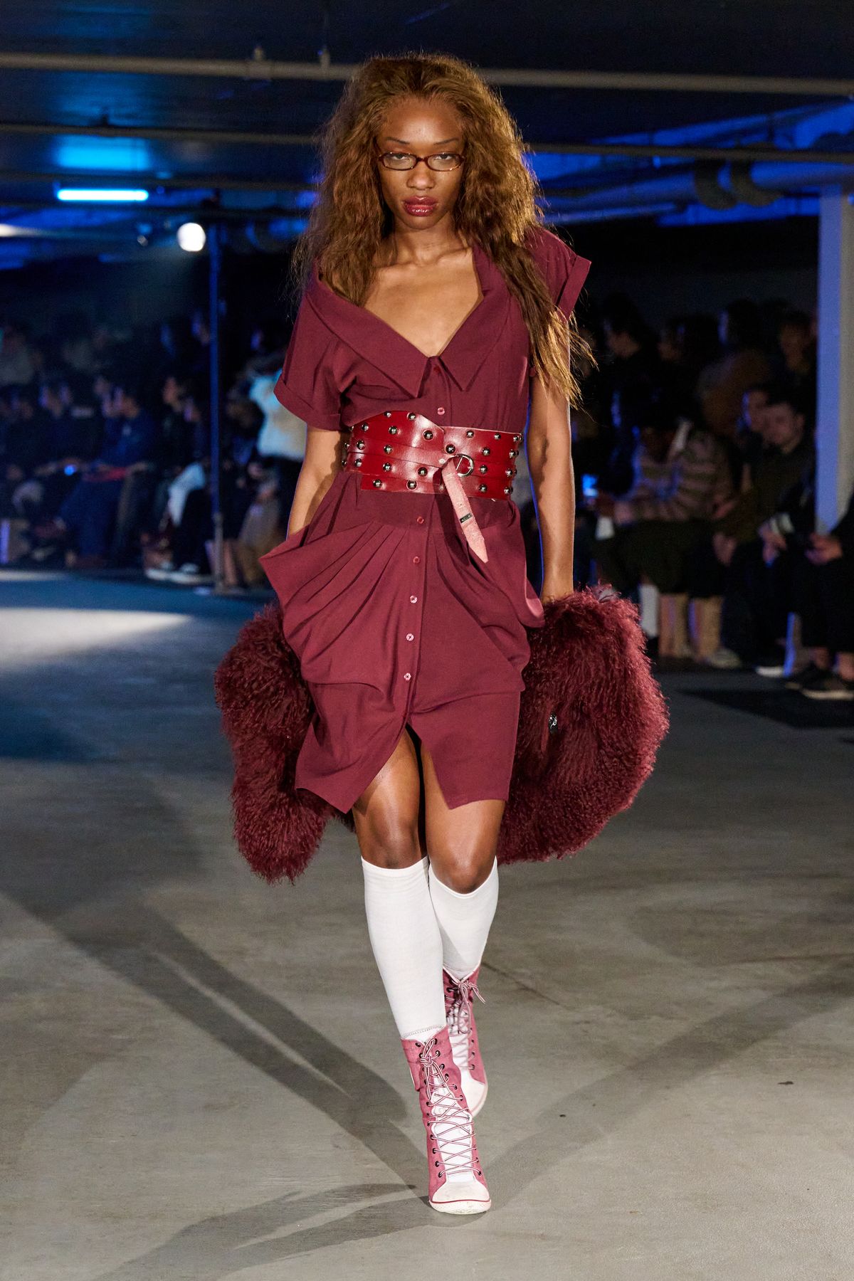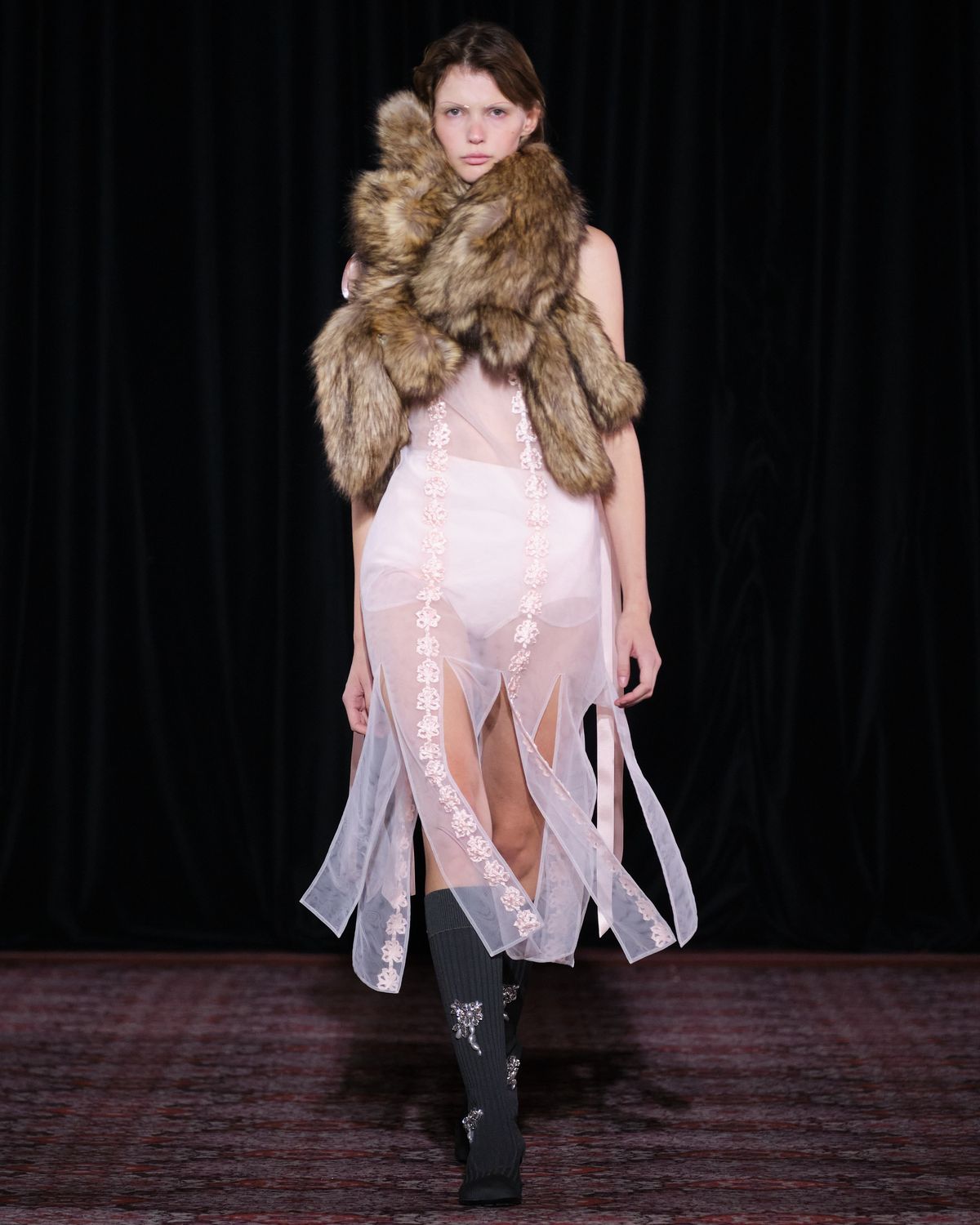 수많은 쇼가 연이어 펼쳐지는 패션위크에서 ‘자이언트 케이크’ 초대장을 받다니, 가뭄에 단비 같은 순간이 아닌가. 스테판 쿡의 디자이너 스테판과 제이크는 이번 시즌, 거창한 런웨이 대신 친밀한 공간으로 우리를 초대했다. 무려 10L의 크림과 잼으로 거대한 아몬드 체리 케이크와 함께! 이들은 이번 시즌 가장 애정하는 룩을 직접 소개했다. 광목에 실크 프린트 조각을 덧댄 팬츠와 한 줄 한 줄 커팅해 유연성을 살린 레더 탱크톱이 바로 그 주인공이다. 형식적인 틀을 벗어난 프레젠테이션에서 ‘런던다운’ 자유분방한 에너지를 한층 선명하게 드러냈다. @stefan_cooke