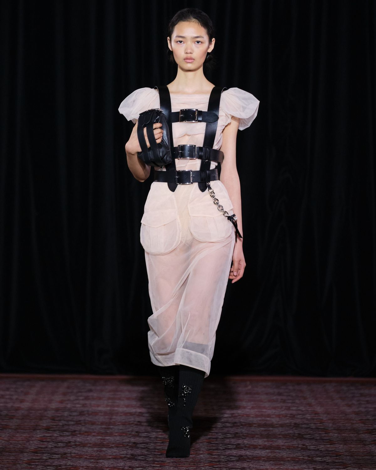 브랜드를 론칭한 후 15년간 쉼 없이 달려온 시몬 로샤에게 지금 필요한 것은 포근한 추억이었다. 자신의 학창 시절을 바탕으로 한 이번 컬렉션은 순수했던 그때의 모습을 고스란히 담아낸다. 자물쇠와 체인 디테일은 자전거 보관소 뒤에서 오갔던 은밀한 대화와 작은 반항의 순간을 상징하며, 거북이 모티프 클러치와 토끼 인형은 어릴 적 들었던 이솝 우화를 떠올리게 한다. 그러나 모든 요소가 과거에만 머무르지 않는다. 볼륨 있는 소매와 리본 장식은 우리가 알고 있는 시몬 로샤의 현재를 담고 있으니까. 과거로 돌아간다는 것은 단순한 회귀를 넘어, 지금과 미래를 더욱 단단하고 풍부하게 만드는 여정이다. @simonerocha_