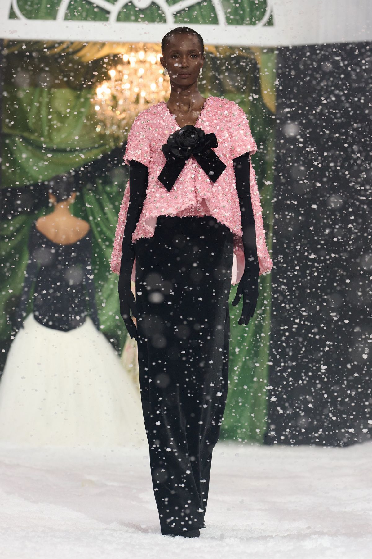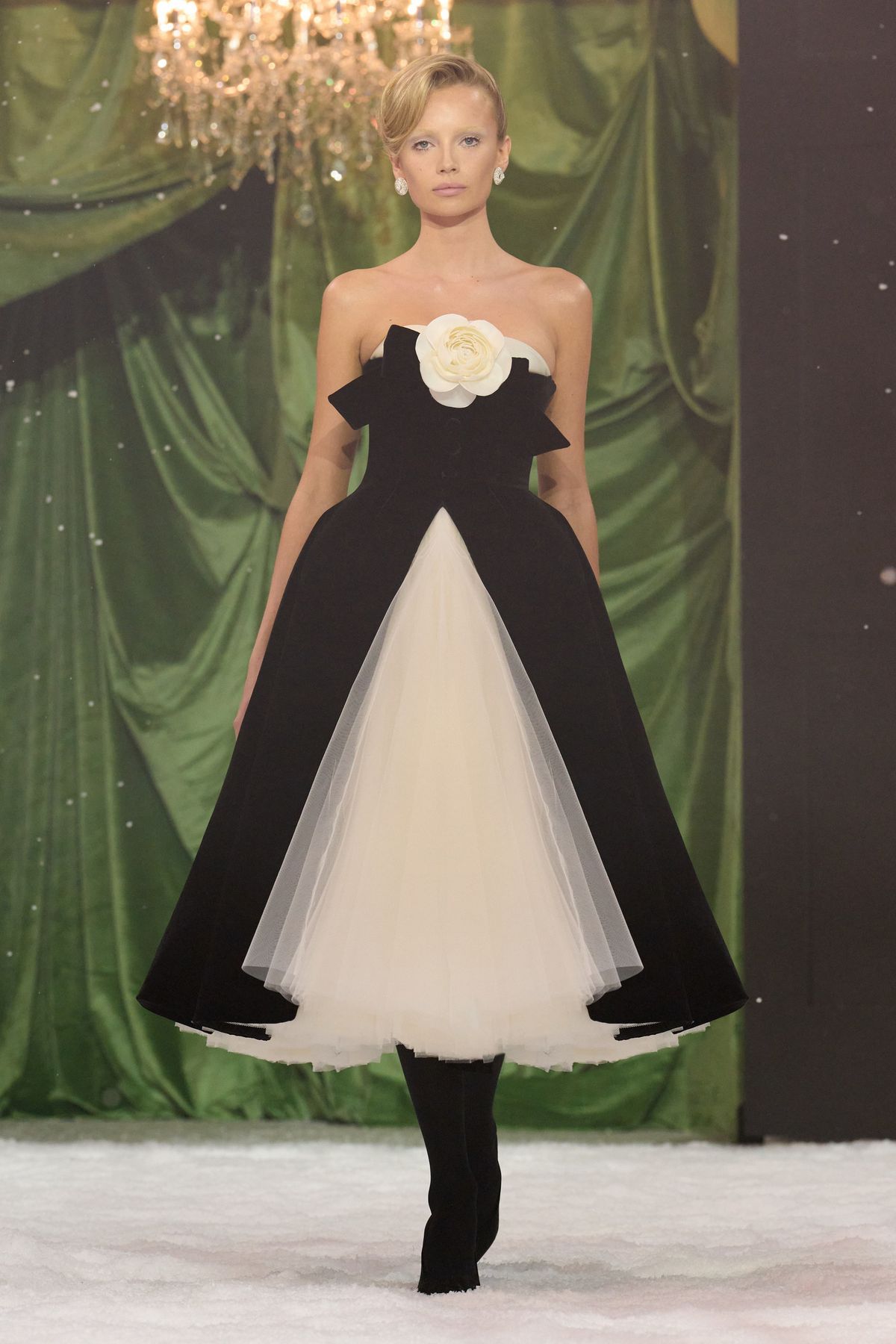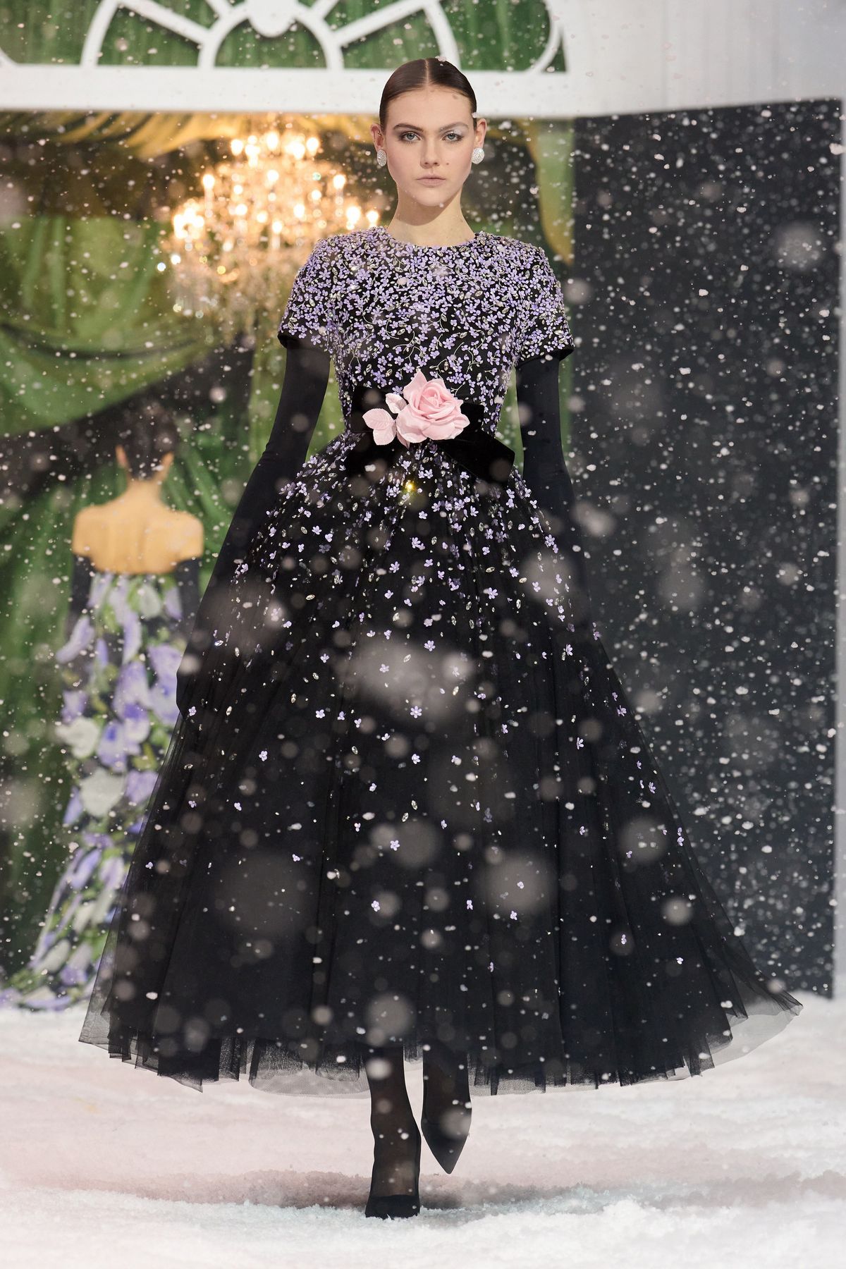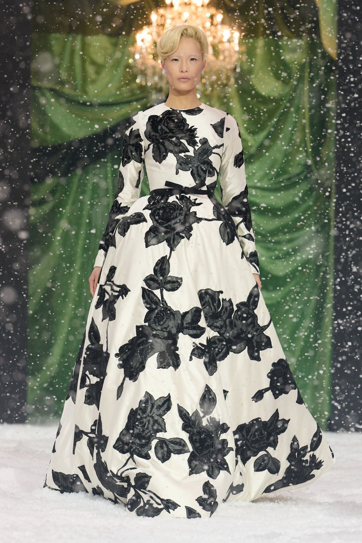 쇼장에 들어서자, 진눈깨비 흩날리는 밤이 펼쳐졌다. 어둠 속에서 고요한 런던 거리를 은은하게 비추는 가로등 불빛. 낭만적인 풍경 속에서 드라마틱한 실루엣이 등장한다. 우아하게 차려입은 이들은 어디로 떠나는 걸까. 목선과 허리를 따라 대담하게 피어난 장미가 존재감을 드러내고, 쌓인 눈처럼 반짝이는 자수 디테일은 시선을 사로잡는다. 특별한 순간엔 특별한 옷이 필요하다. 보기만 해도 그날의 공기와 행복했던 감정이 떠오르는 옷은 시간이 지나도 간직하고 싶은 법이다. 일상의 순간마저 특별한 기억으로 바꿔주는 패션은 마법보다 강렬한 힘이 있다. 리처드 퀸은 그의 아름다움에 대한 깊은 애정과 믿음으로 또 한 번 우리를 설레게 한다. @richardquinn