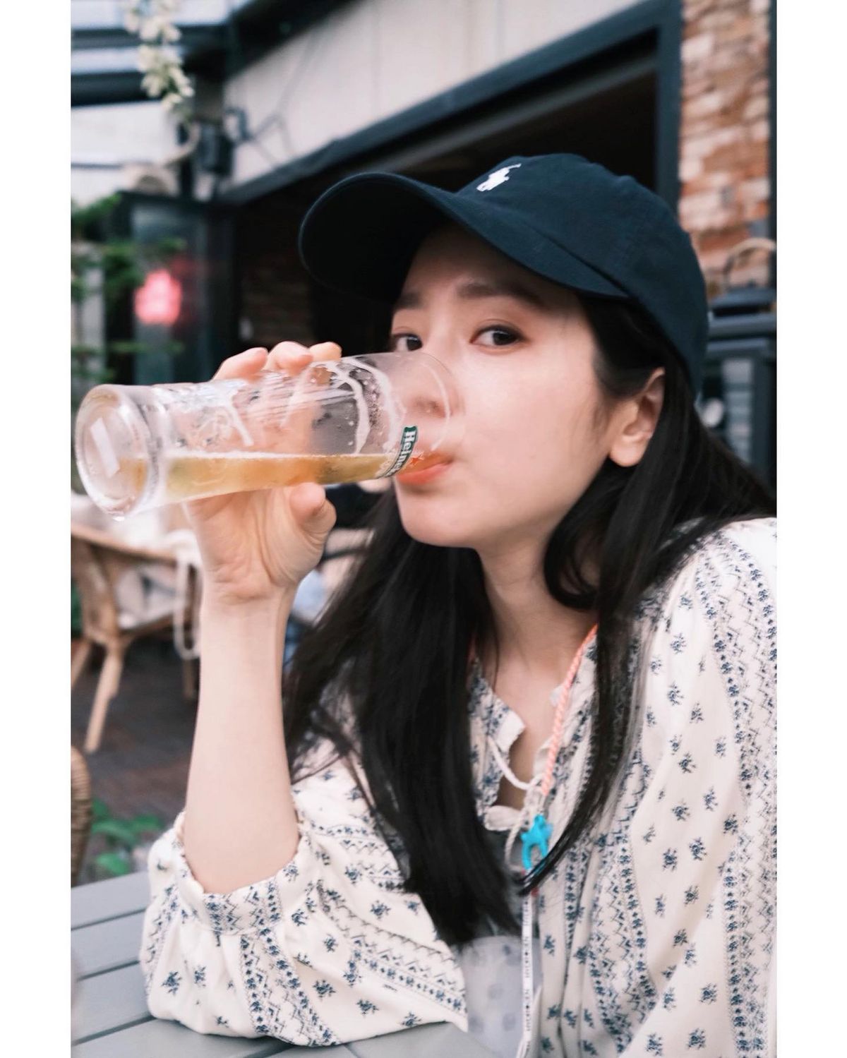 데이트 룩 또는 봄날 피크닉 룩으로 추천하고 싶은 스타일. 볼캡을 활용해 청순하면서도 러블리한 스타일을 연출한 배우 한지민을 참고해보자. 청순의 대명사 한지민처럼 러블리한 패턴 원피스에 볼캡을 매치해보는 것은 어떨까? 원피스 하나만 입으면 꾸민 듯 여성스러운 분위기를 연출할 수 있지만, 여기에 캐주얼한 볼캡을 매치하면 볼캡이 중간지대 역할로 내추럴한 매력을 한층 더해주어 봄날 분위기 여신이 완성된다.