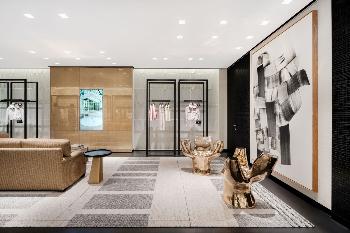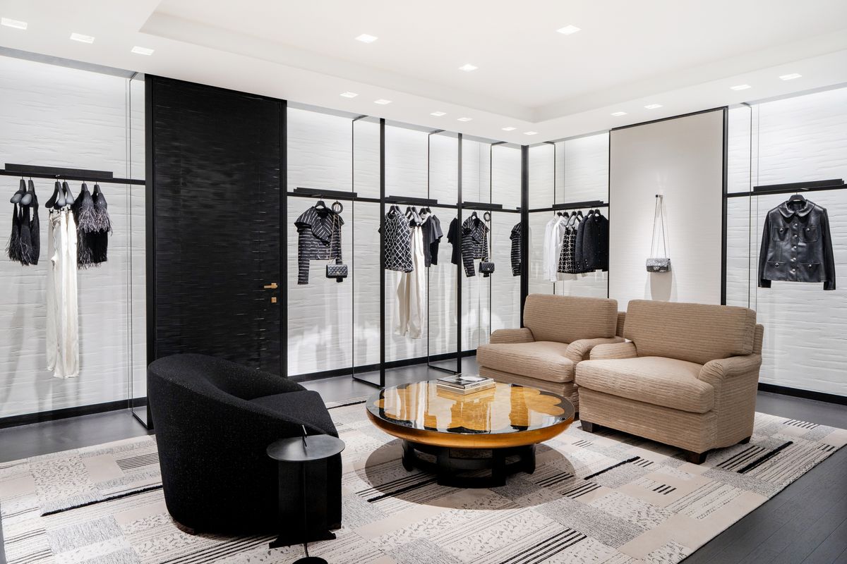 건축가 피터 마리노는 대비와 균형을 통해 샤넬의 과감한 팔레트와 소재의 조화를 이루어 현대적인 감각을 온전히 표현하는 데 집중했다. 브론즈 메탈, 수작업으로 광택을 낸 표면, 검은 용암석의 프레임과 문, 고급스러운 벽 마감재는 직조된 실크 및 울 카펫과 상징적인 트위드 가구와 조화롭게 어우러진다. 또한 매장 벽면에는 가브리엘 샤넬 여사가 추구했던 예술가 후원의 전통을 이어받아 다양한 예술 작품을 찾아 보는 재미 또한 쏠쏠하다. 작가 이배의 작품을 포함해 그레고르 힐데브란트가 제작한 코코 샤넬의 ‘초상화’, 요한 크레텐의 금박 세라믹 조각을 포함한 70 여 점의 예술 작품이 공간을 채우고 있다.