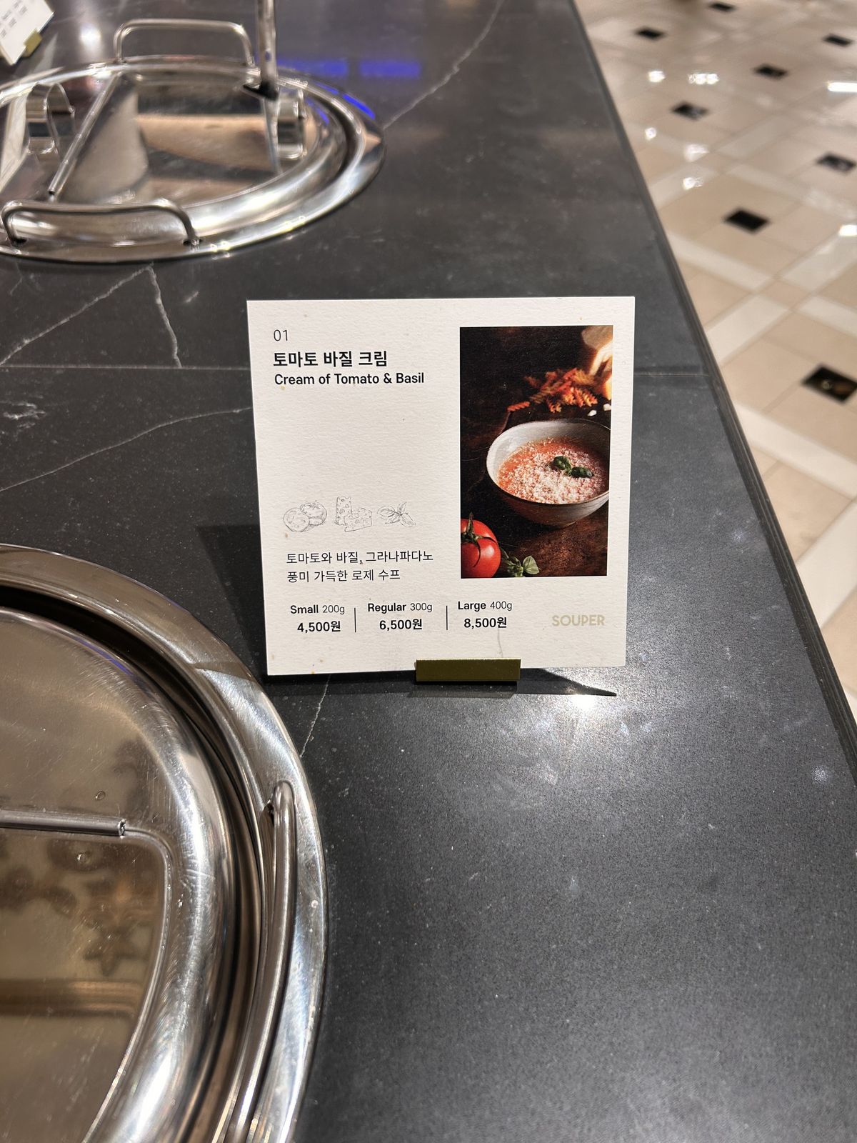 수퍼의 토마토 바질 크림 수퍼가 수프의 최강자가 되도록 만든 시그니처 메뉴. 오랜 시간 볶아 카라멜라이즈한 양파, 토마토, 파마산 치즈까지 완벽한 조합. 여기에 부드러운 향긋한 바질이 더해져 느끼함을 잡는다. 몸을 데우고 부담 없이 식사를 해결하기에 딱이다.