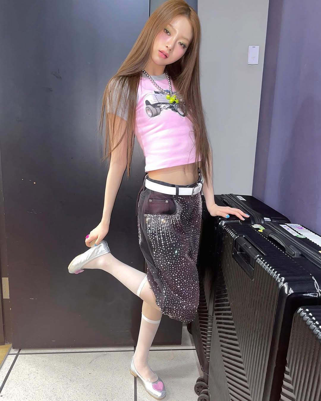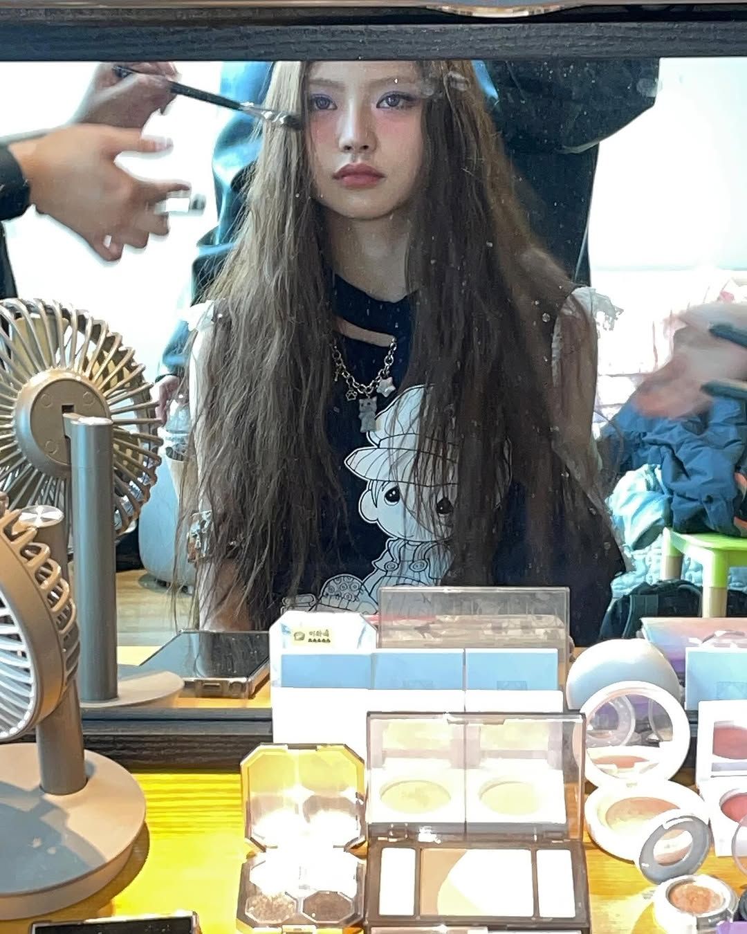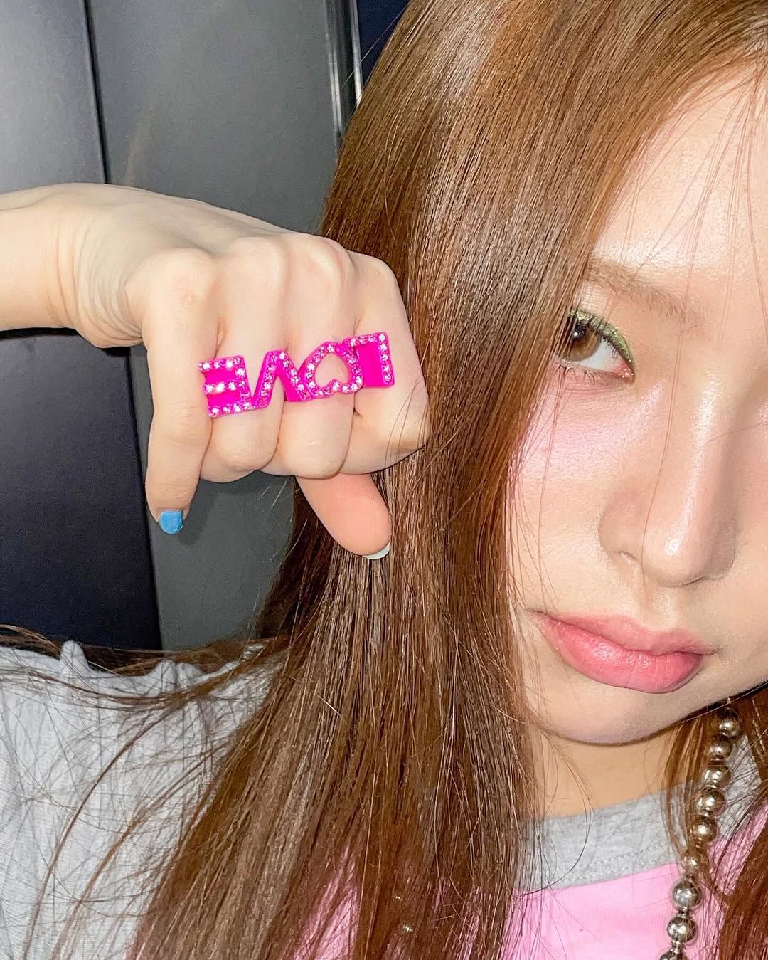 먼저 쌍커풀 라인을 가득 메운 그린 톤의 섀도와 언더라인부터 삼각 형태로 내려온 쨍한 핑크 블러셔는 라이트 브라운 컬러의 렌즈와 묘한 보색 조화를 이뤄냈다. 키키의 트레이드 마크화 되어가는 히피스러운 헤어 역시 그 시절 향수를 불러일으키면서도 2025년에 손색없이 트렌디한 무드를 뿜어내는 중!