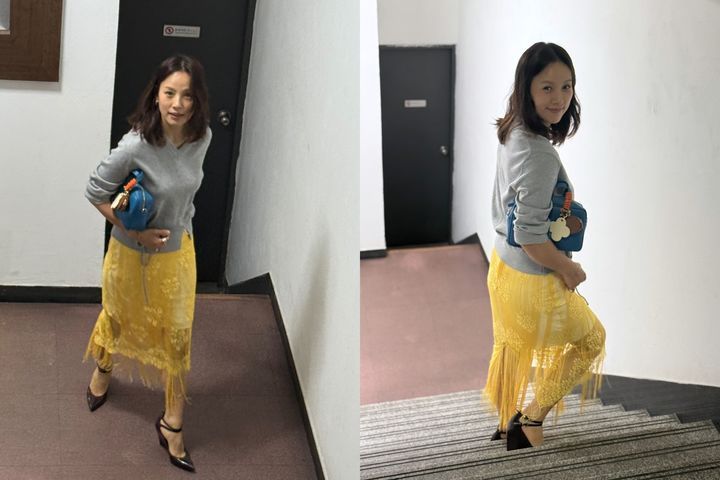 역시 패션의 귀재 이효리 누구나 활용할 수 있는 옐로우 컬러지만, 결혼식에서 이효리의 옐로우 스커트를 입을 것이라고는 생각하지 못한 것 같다. 개인적으로는 모노톤 의상을 상상했기 때문에, 오히려 더 새로웠다. 그레이 컬러의 브이넥 니트에 태슬 장식이 있는 옐로우 스커트를 매치하여, 너무 튀지 않으면서도 화사한 하객 룩을 완성했다. 여러분도 이효리처럼 기본적인 그레이 컬러 니트에 컬러풀한 스커트를 매치해보자. 그레이 컬러 니트가 주는 의외의 세련됨으로 색다른 하객 룩을 완성할 수 있을 것이다.