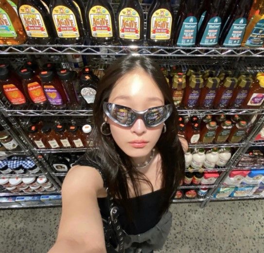 문서윤의 스타일링에서 빼놓을 수 없는 아이템 중 하나가 바로 선글라스다. 독특한 프레임과 디자인의 선글라스를 활용해 룩에 개성을 더한다. 데뷔 전 페스티벌 패션에서는 반짝이는 금색 반팔 니트에 암 워머를 매치해 위트 있는 스타일을 완성했다.