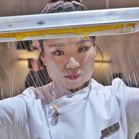 최근 북촌 한가운데 고즈넉한 전통 한옥 수경재에 문을 연 아라리 북촌. ‘작은 일에도 기쁨을 느끼는 마음’을 뜻하는 순우리말에서 따온 이름처럼, 한식 파인 레스토랑 비채나를 운영하는 가온소사이어티가 한식의 대중화를 모색하고자 만든 한식 디저트 브랜드다. 해외 관광객이 쉽게 즐길 수 있도록 유연하게 전통을 탈바꿈한 다과 메뉴가 돋보인다. “뉴 클래식이라는 개념 아래 동시대와 가장 어울리는 한식을 만들고자 합니다. 더 많은 이들이 한식을 접하고 호기심을 갖게 하는 게 저희의 지향점이죠.” 아라리 이지우 페이스트리 총괄 셰프의 말이다. 아라리가 추구하는 한식의 본질은 다양성을 자연스럽게 포용하는 데 있다. 대표 메뉴인 ‘아라리 차’는 홍시와 산딸기 등 제철 식재료로 만든 차에 매일 과육의 속을 골라내 분자기법을 적용해 동그랗게 빚은 ‘란’을 동동 띄워낸 것. 밤을 삶아 체에 내려 꿀과 계피가루를 섞은 ‘율란’, 대추를 조려 만든 ‘조란’ 같은 전통 다과 조리법에서 착안했다. 전통 음료로 마실 수 있지만, 란 자체를 디저트로 즐기기 좋다. 가온 파인다이닝 코스의 마지막에 맛볼 수 있던 메뉴를 변형한 것. 조청으로 만든 약과의 켜를 살려 흑임자 초콜릿 등을 코팅한 ‘약과 초콜릿’, 떡과 팥앙금을 국화빵 같은 과자 사이에 조합한 ‘서울 모나카’ 등 한층 친숙하게 즐길 수 있는 메뉴를 늘려갈 예정이다.