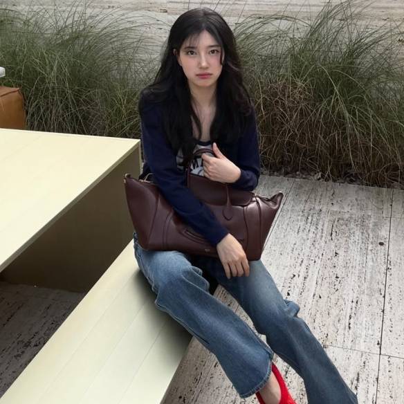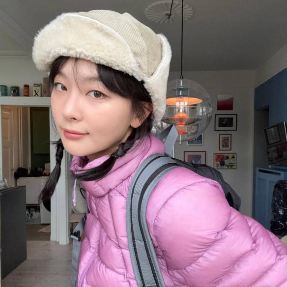 베레모는 언제나 클래식의 대명사로 존재해왔다. 그러나 이번 가을 그 귀환은 단순한 회귀가 아니라 훨씬 더 다채로운 변주와 함께 이루어지고 있다. 효민은 블루 체크 셔츠와 같은 톤의 블루 베레모를 매치하며 단정하면서도 사랑스러운 룩을 완성했다. 머리 위에 가볍게 얹은 모자 하나가 전체 스타일을 정리해주는 순간이었다.