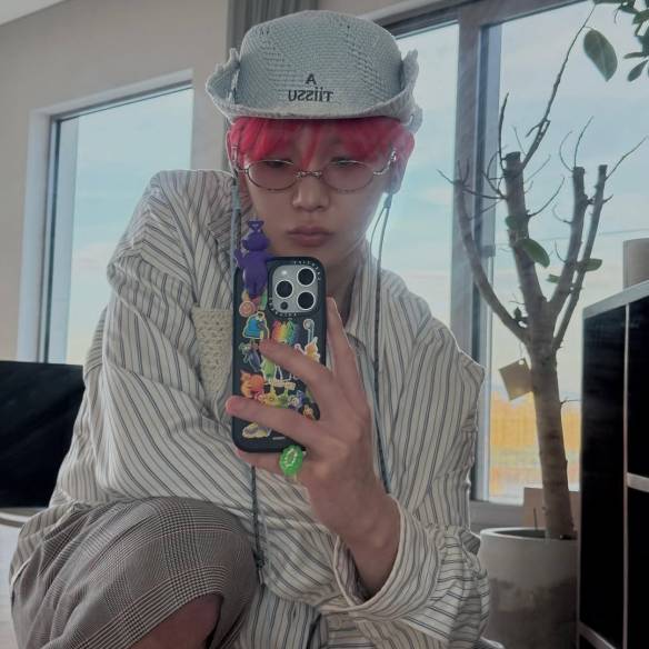 체크 패턴을 힙하게 연출한 나나 @jin_a_nana