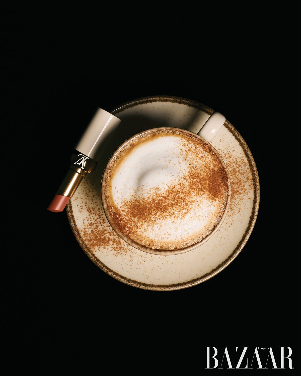카푸치노 옆에 놓인 제품은 따뜻한 누드 톤의 Louis Vuitton LV 밤, 010 누드 포에트리 23만원.