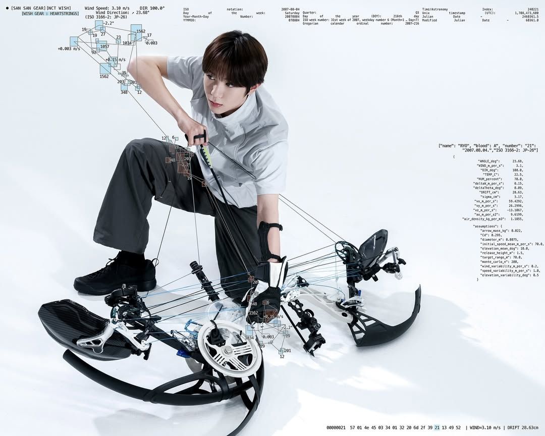 NCT WISH가 산산기어와 협업한 ‘WISH GEAR : HEARTSTRINGS’ 컬렉션을 공개했다. 엔시티의 새로운 미니 앨범과 함께하는 이번 프로젝트는 남다른 비주얼로 시선을 모았다. 총 2가지 컨셉으로 전개된 이번 프로젝트에서 더욱 눈길을 끈 건 바로 양궁 부원 컨셉의 파트 A. 멤버들은 저마다 독특한 개성을 살린 양궁 소품과 함께 했는데, 이 제작 소품의 퀄리티가 남달라 화제가 된 것. 아트 피스라 칭해도 손색이 없는 이 양궁 소품은 바로 아트 디렉터 아리앤청의 손에서 탄생했다. 다양한 아트 작업을 통해 자신만의 ‘쇠맛’ 세계를 열어가는 아리앤청의 독특한 예술 세계에 많은 아티스트가 협업의 러브콜을 보내고 있다고!
