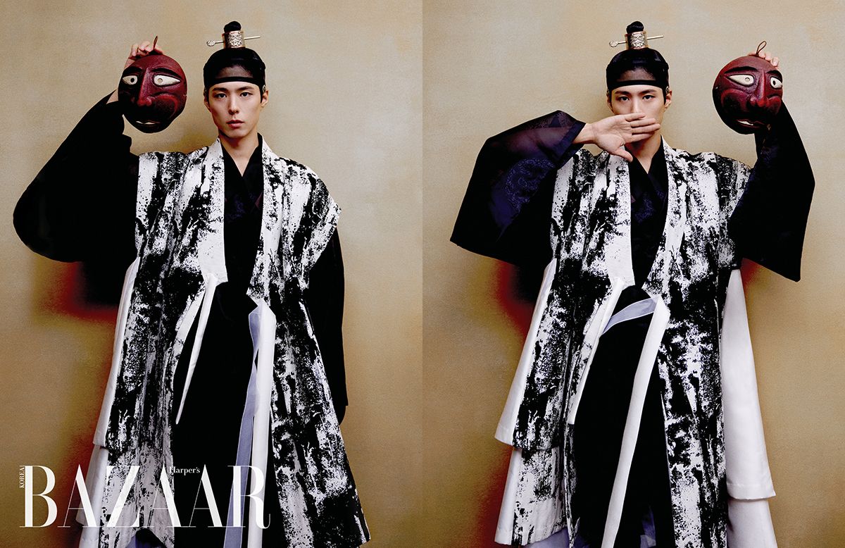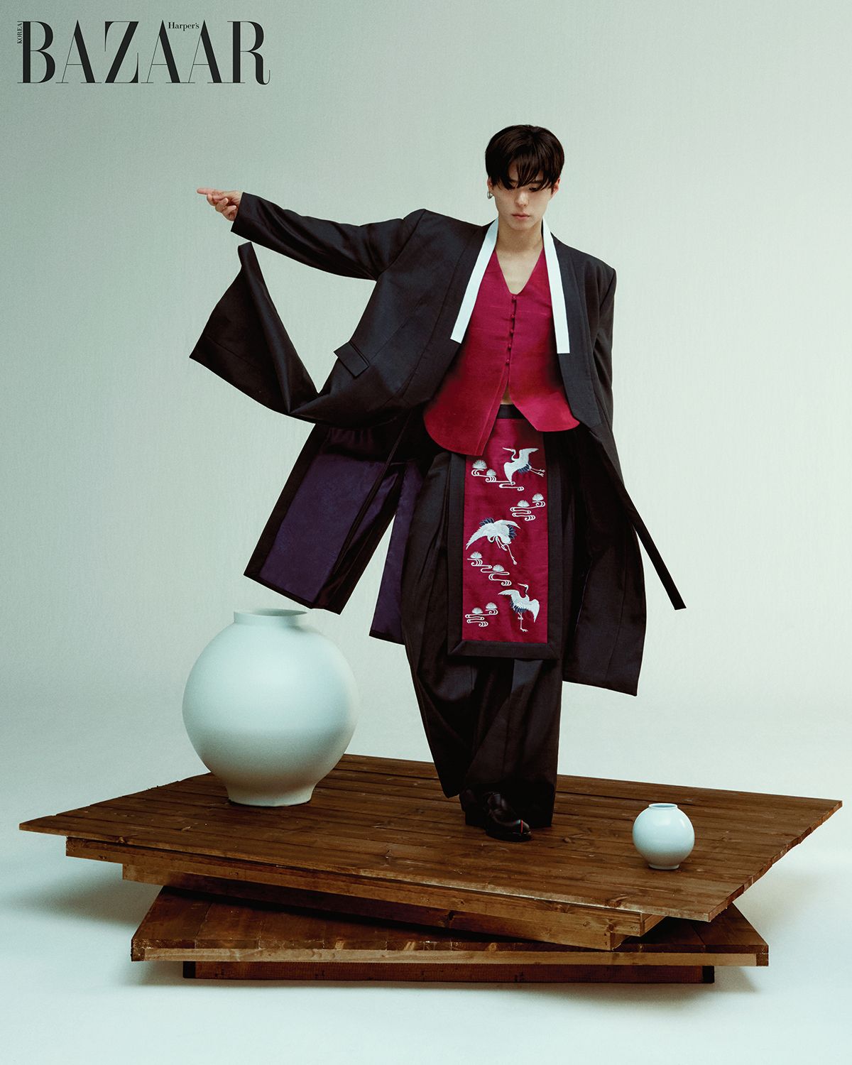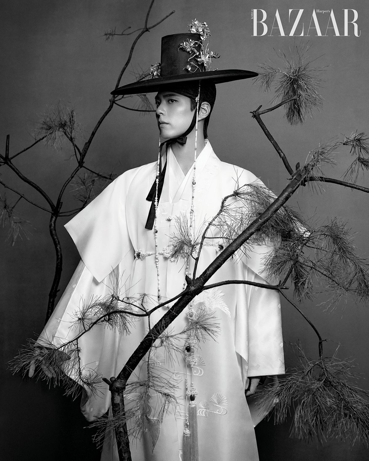 하퍼스 바자 드라마 <구르미 그린 달빛> 이후 9년 만에 도포를 갖춰 입은 모습을 보게 되었네요. 오늘 촬영은 ‘2025 한복웨이브’ 프로젝트로 시작되었죠. 최초의 남성 모델로 선정된 걸 축하해요!