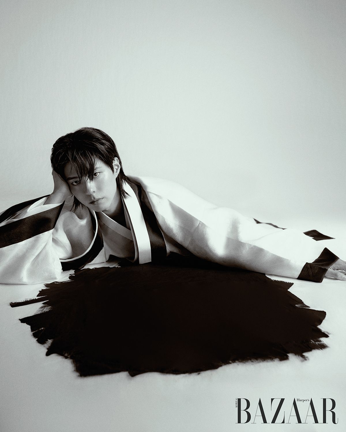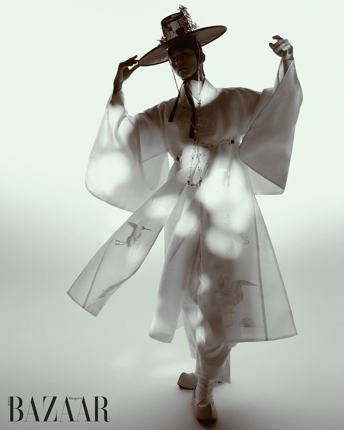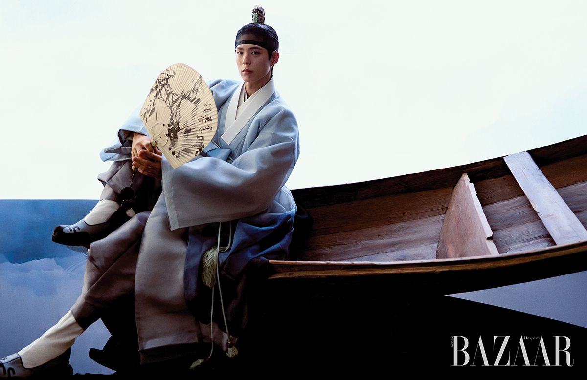 하퍼스 바자 드라마 <구르미 그린 달빛> 이후 9년 만에 도포를 갖춰 입은 모습을 보게 되었네요. 오늘 촬영은 ‘2025 한복웨이브’ 프로젝트로 시작되었죠. 최초의 남성 모델로 선정된 걸 축하해요!