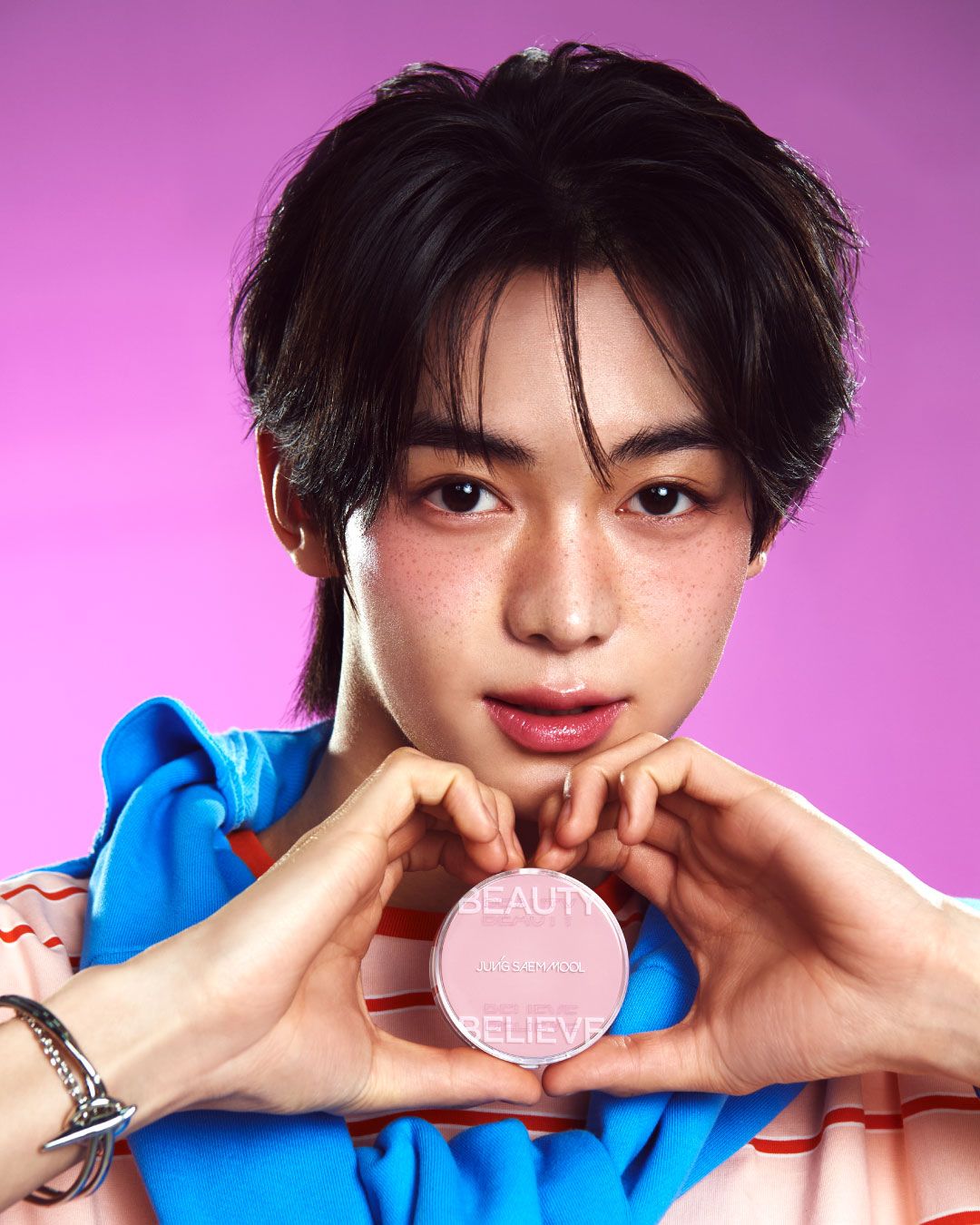 저스트 메이크업 2라운드에서는 본인의 시그니처인 눈을 강조하는 스타일을 살려 바비를 주제로 한 메이크업을 선보였다. 특히 속눈썹을 정교하게 쌓아 올려 완성한 아이 메이크업 인상적이었다. 짙은 아이라인과 또렷한 속눈썹, 핑크 톤의 컬러감으로 바비 특유의 눈매를 표현하며, 살아있는 인형 같은 룩을 완성했다.