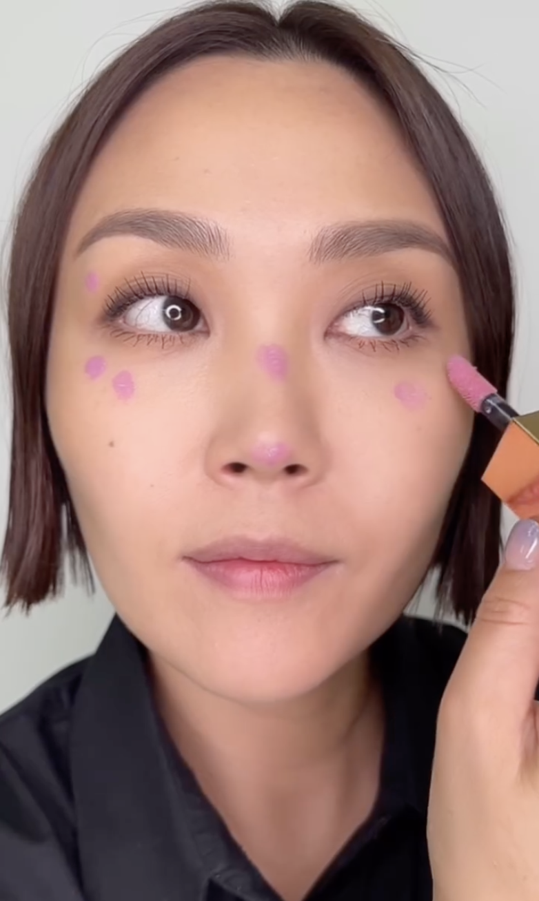 청하 가을 웜 메이크업에 사용한 제품, 토니모리 치크톤 립앤치크 듀오밤 베이베 피치와시드물 호호바 립 에센스(출처: @artisi_jew71799)