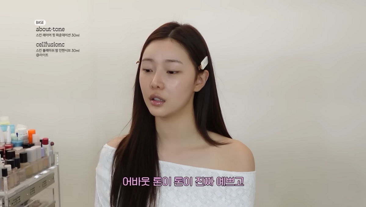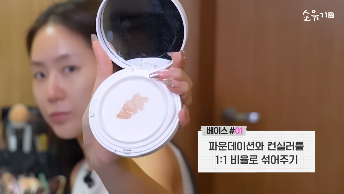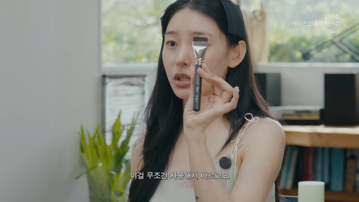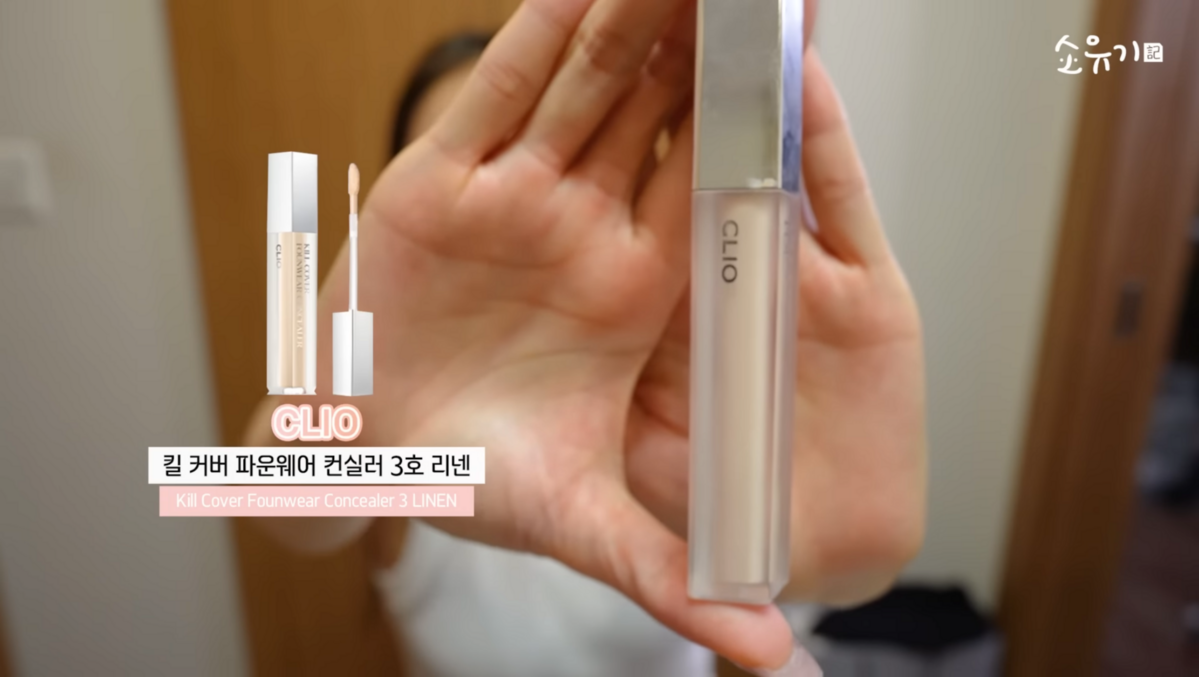 소유의 코덕력은 이미 정평이 난 바. 방송용 메이크업도 직접 할 정도니, 그만큼 베이스에 대한 기준도 높을 터! 특히 그가 유튜브에서 보여준 방송용 메이크업은 센 조명에 맞서는 강력한 밀착력이 필수다. 그때 꺼낸 제품이 바로 클리오 킬 커버 파운웨어 파운데이션 #란제리와 같은 라인의 컨실러 #3호 리넨. 이 두 제품을 선택한 이유는 아마 빈틈없는 피부 표현, 결점 커버, 그리고 강력한 픽싱 때문일 것. 센 조명에서도 녹지 않게, 탄탄한 기본기를 다지는 게 핵심이다. 파데와 컨실러를 1:1 비율로 섞어 사용하고 1차, 2차로 나누어 얇게 두 번 베이스를 올려주는 방식으로 레이어를 쌓아주는데, 첫 레이어로는 결을 정돈하고, 두 번째 레이어로는 색조를 모두 끝낸 뒤 한번더 중앙부에 덧칠해 완성해주면 된다.