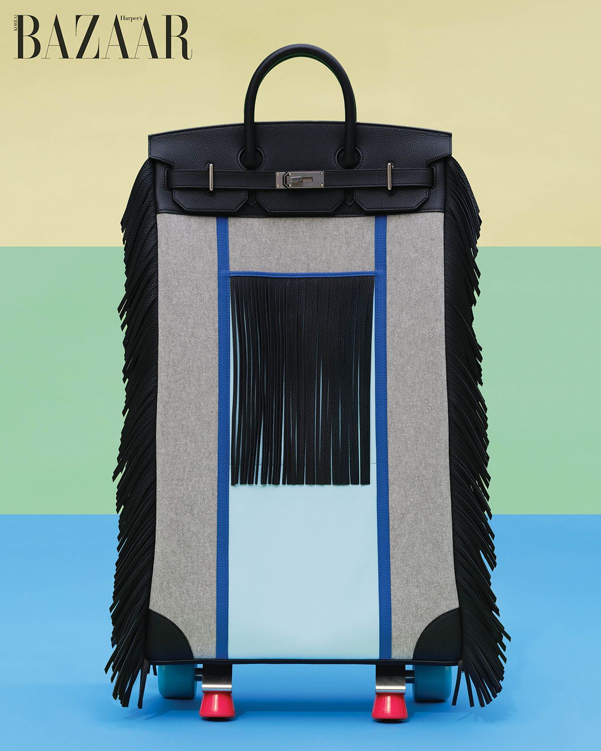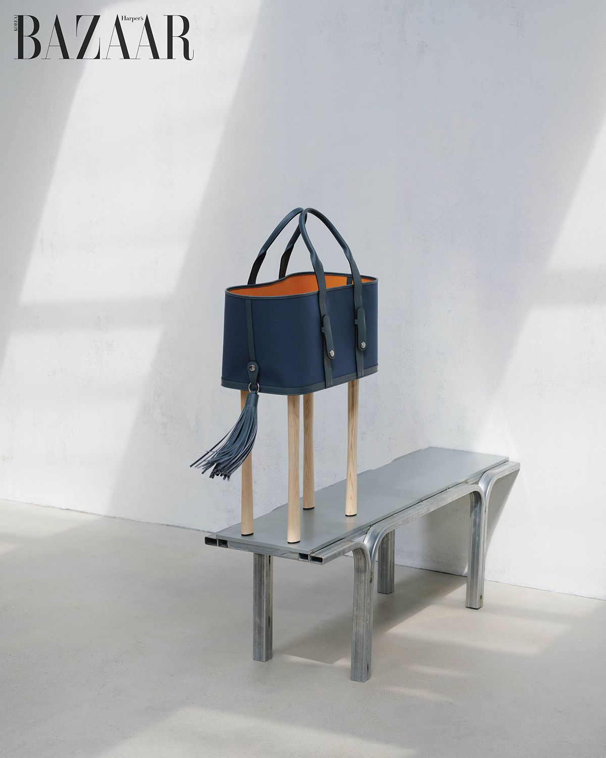 카프스킨과 뚜알 아쉬(Toile H) 캔버스로 만든 ‘가든 파티’와 애시 우드 소재의 스툴 다리가 결합된 백은 Hermès.