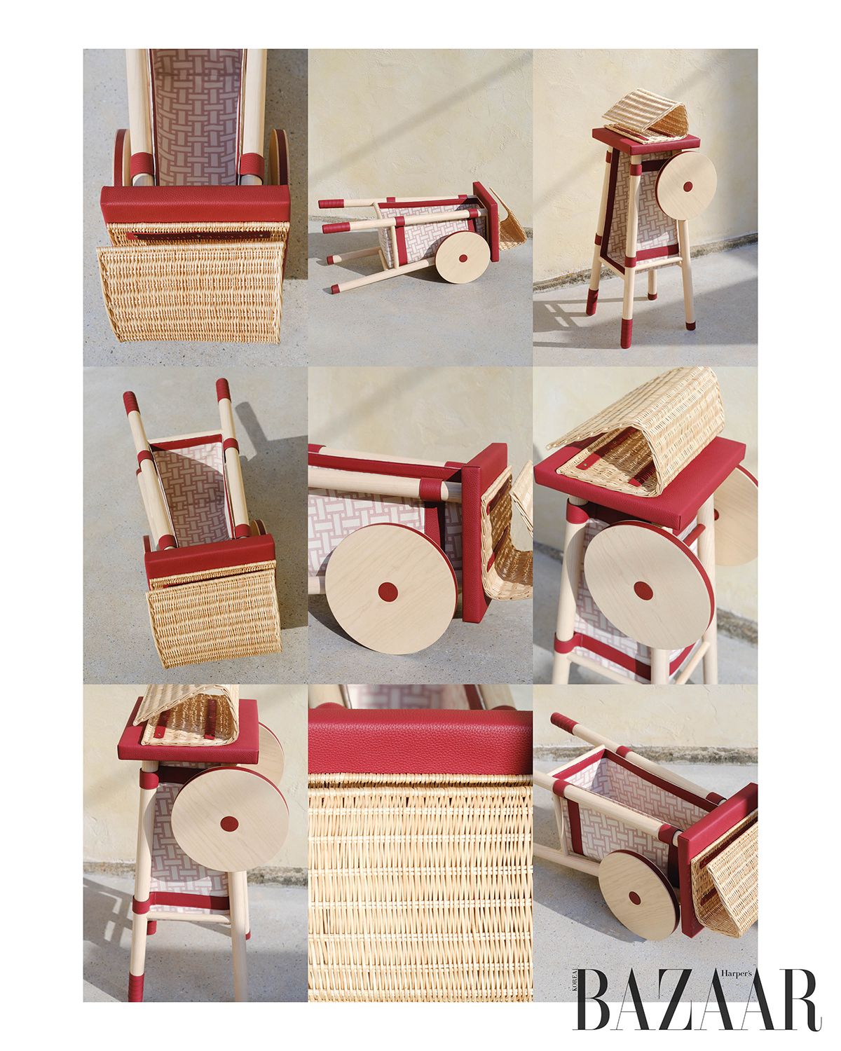 윌로 우드 라탄과 애시 우드 소재의 장식용 수레는 Hermès.