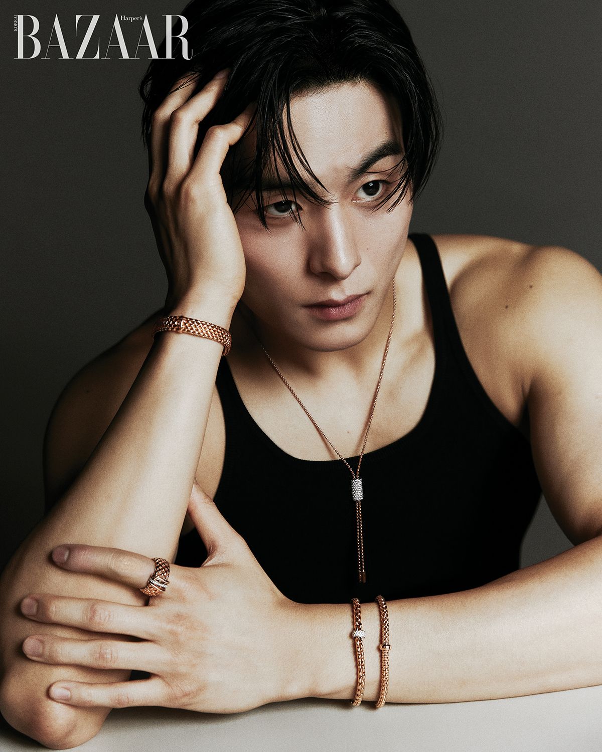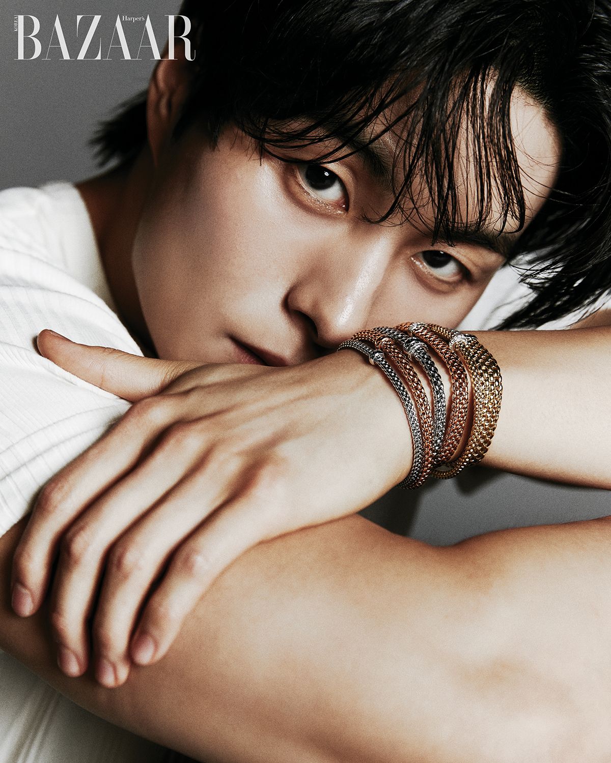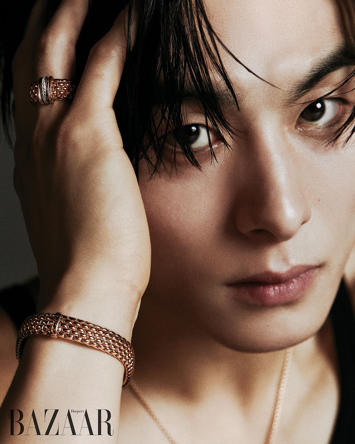 특별한 잠금 장치 없이도 유연하게 흐르는 포페 주얼리. 날카롭고도 매혹적인 세공의 힘이 이탈리아에서 건너와 배우 정건주에게 닿았다. 그 순간 발하는 관능적인 빛을 보라.
