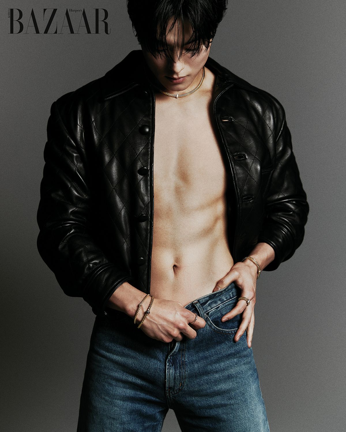 레더 재킷은 Ernest W. Baker by 10 Corso Como Seoul. 데님 팬츠는 스타일리스트 소장품.