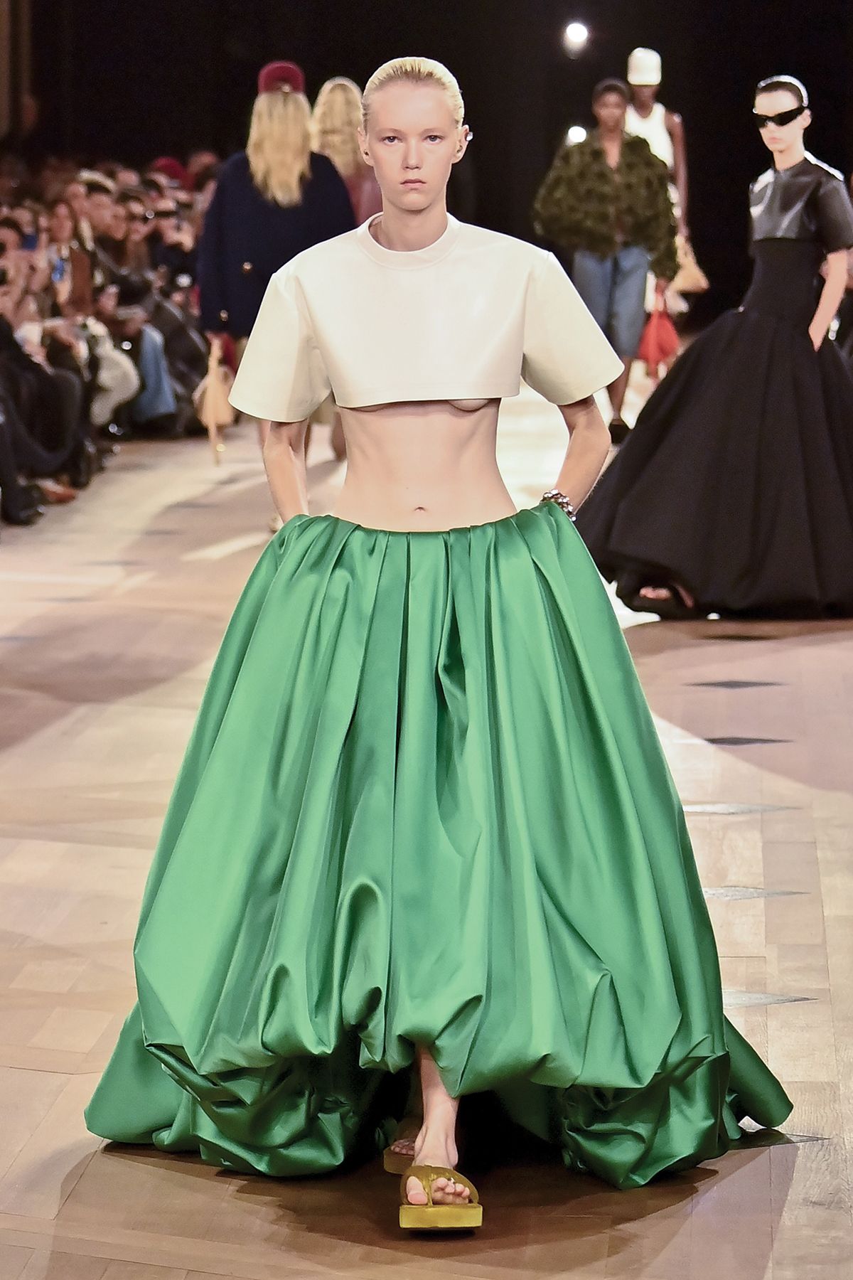 적어도 내 눈엔, 쇼를 끝낸 피에르파올로 피치올리의 마음이 한결 가벼워 보였다. 아니, 어쩐지 여유마저 느껴졌다. 극찬을 받았던 뎀나 바잘리아의 뒤를 잇는 발렌시아가 디렉터. 관심과 우려가 교차한 무대였던 만큼 부담이 컸을 터다. 그러나 피치올리는 53개 룩으로 그 기대를 훌쩍 넘어섰다. 결과적으로 그는 하우스의 전통을 해체하지 않았고 창립자 크리스토벌 발렌시아가는 물론 전임자였던 니콜라 제스키에르, 뎀나 등의 코드까지 오마주하며 따스한 헌사도 바쳤다. 모두가 숨죽인 가운데 첫 룩이 등장했다. 1957년 크리스토벌 작(作) 사크 드레스의 현대적 변주. 허리선을 없앤 직선 실루엣이 몸을 감싸고, 움직임에 따라 생긴 공기의 곡선이 우아하게 흘러내렸다. 이어 등장한 벌룬 스커트와 코쿤 코트는 구름처럼 부풀어 런웨이를 채웠고, 아이코닉한 네오 가자르(neo gazar) 소재 드레스는 구조를 유지하면서도 섬세하게 흔들렸다. 하우스 DNA가 넘실대는 가운데, 피치올리의 개성은 없었냐고? 아니다. 그만의 컬러 플레이와 디테일은 곳곳에 명민하게 배치됐다. 선명한 레드, 라임 그린, 핑크에서 피치올리 특유의 감성이 느껴졌고, 앞뒤 길이가 다른 헴라인과 드레이프 디테일이 그만의 독특한 볼륨감을 만들어냈다. 놀랍게도 그는 여전히 티셔츠나 데님 텍스처 팬츠 같은 일상적 아이템을 하이패션 언어로 재해석하며 스트리트웨어적 감각도 완전히 배제하지 않았다. 일상과 구조적 아름다움이 공존하는 순간이랄까. 이번 컬렉션의 타이틀은 ‘더 하트비트(The Heartbeat)’. 피치올리는 새로운 시작이 아니라 오래된 심장을 다시금 뛰게 하고자 했다. 그가 발렌시아가에 남긴 첫 장면은 분명 성공적이었다.