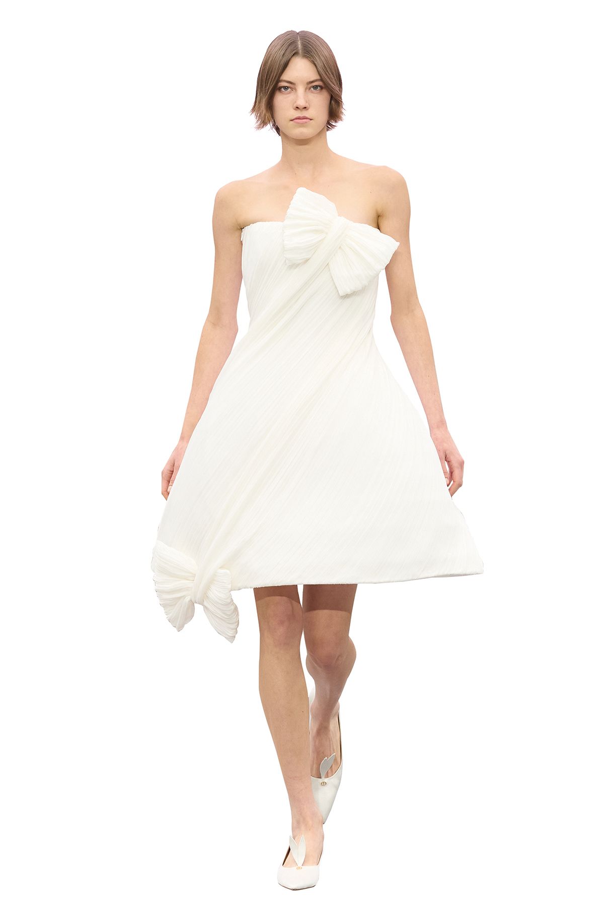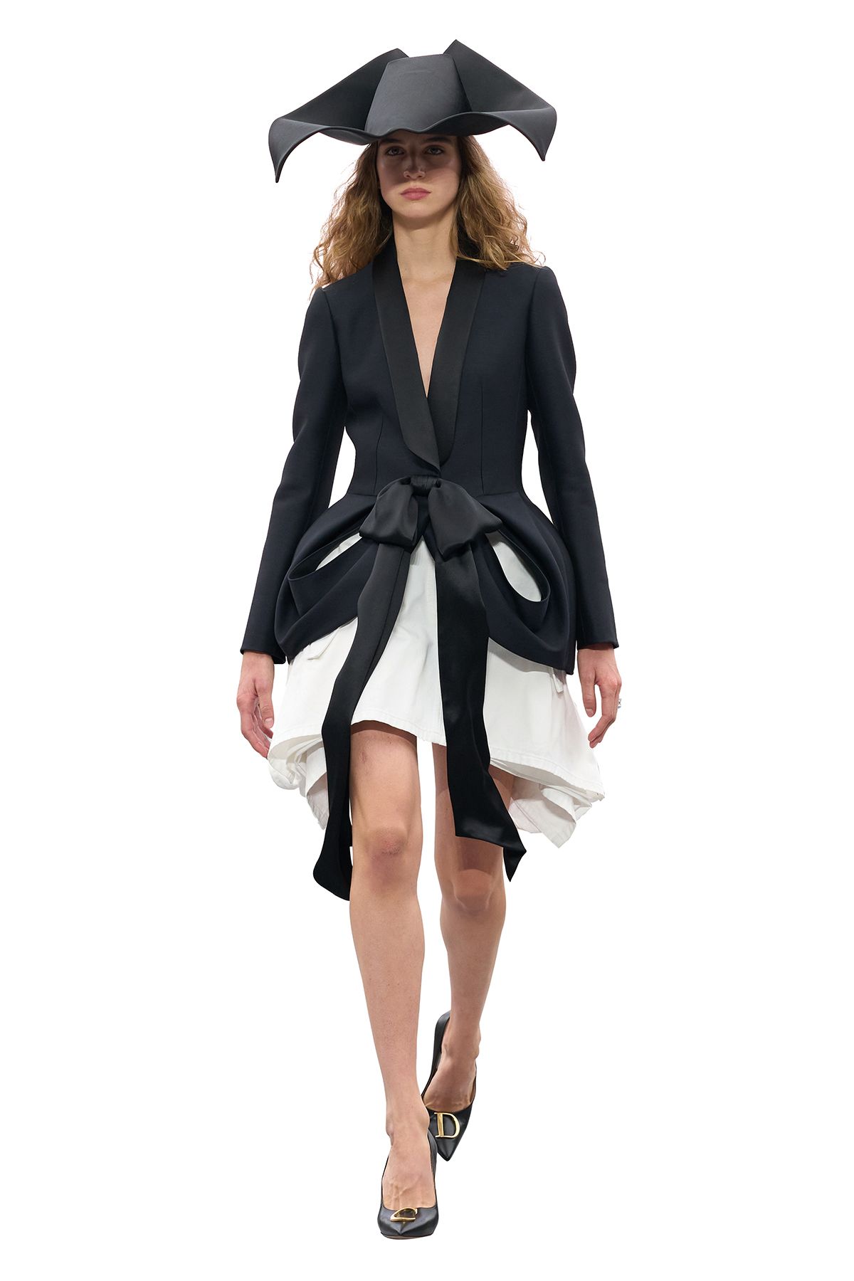 거두절미하고, 성공적인 남성 쇼 이후 공개된 여성 쇼는 어땠을까? 단언할 수 있는 건 디올이 어려졌다는 것이다. 그리고 동시대 여성들이 지갑을 열게 할 법한 포인트를 곳곳에서 찾을 수 있었다. 브랜드로서는 아주 좋은 신호일 테다. 켜켜이 쌓인 아카이브를 탐구해 그만의 방식으로 펼쳐 놓은 것도 인상 깊었다. 특히 오프닝을 장식한 전등갓 실루엣의 드레스부터 디올의 상징 중 하나인 리본을 다양하게 변주했는데, 리본 장식의 무엇조차 살 생각이 없던 에디터의 마음까지 사로잡았음은 물론이다. 바 재킷의 재탄생도 흥미로웠다. 실루엣은 물론 드레이핑 장식, 함께 매치된 미니스커트와의 궁합도 훌륭했다. 그가 사랑하는 볼륨과 흐르듯 가벼운 소재들, 장인들의 손에서 태어난 헤드피스까지 저마다의 존재감을 드러내며 자연스레 이어졌다. 이전 남성 쇼에서 선보인 요소도 만나볼 수 있었다. 남성용 카고 반바지를 1948년에 선보인 델프트 드레스의 주름을 참고해 미니스커트로 선보인 것이 대표적인 사례다. 거대 패션 하우스의 미래를 어깨에 짊어지고, 모두의 이목이 집중될 20분 남짓의 쇼를 선보인다는 건 그로서도 엄청난 압박이었을 것. 눈시울을 붉힌 채 피날레에 등장한 앤더슨의 얼굴엔 만감이 교차해 보였다. “여성들에게 행복을 안겨주는 것”을 꿈꿔왔던 창립자의 바람대로, 앞으로도 여성들을 행복하게 해줄 컬렉션을 보여주길. 그리고 그도 행복하게, 부디 건강하게 오래도록 작업해주길!
