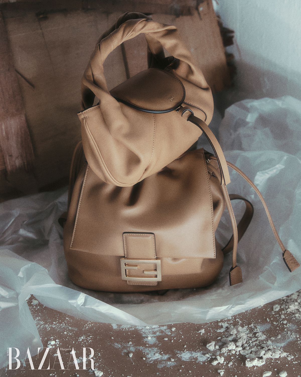 트위스트 핸들이 돋보이는 ‘펜디 스파이 미니’ 백, 카푸치노 컬러의 ‘백팩’은 각각 3백만원대 Fendi.