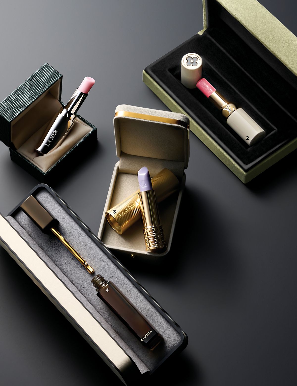 랑콤의 팬이라면 더욱 소장 가치 있는 창립 90주년 기념 레 익셉셔널 컬렉션. 브랜드 최초의 립스틱에서 모티프를 딴 골드 패키지에 압솔뤼 루즈를 담았다. 과거와 현재를 상징하는 3가지 립스틱과 달리 ‘2115 퍼플 로즈 밤’은 미래를 나타내며 입술 pH 농도에 따라 자연스럽게 발색이 달라지도록 만들었다. 이는 개인의 고유한 미에 시너지 효과를 더한다는 랑콤의 지향성을 의미한다. 단독으로 사용해도 좋지만 촉촉함만 가볍게 더할 수 있어 베이스로도 추천한다. 18만원대.