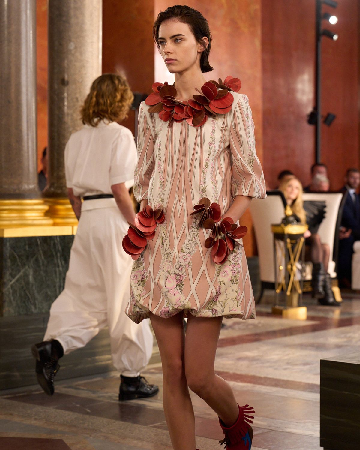 무대는 무대 디자이너 마리-안 드빌(Marie-Anne Derville)이 구성한 현대적인 아파트로 꾸며졌다. 18세기 명장 조르주 자코브(Georges Jacob)의 가구, 1930년대 아르 데코 스타일의 미셸 뒤페(Michel Dufet) 의자, 19세기 세라믹 예술가 피에르-아드리앙 달페이랏(Pierre-Adrien Dalpayrat)의 조각 등 시대를 초월한 작품들이 공간을 채운다. 여기에 드빌 자신이 디자인한 가구들이 더해져, 프랑스 미학의 흐름을 한눈에 보여준다. 쇼 음악은 탕기 데스타블(Tanguy Destable)이 작곡했으며, 토킹 헤즈의 데이비드 번(David Byrne)의 곡 ‘This Must Be the Place’ 가사를 배우 케이트 블란쳇(Cate Blanchett)이 낭독해 깊은 여운을 남겼다.