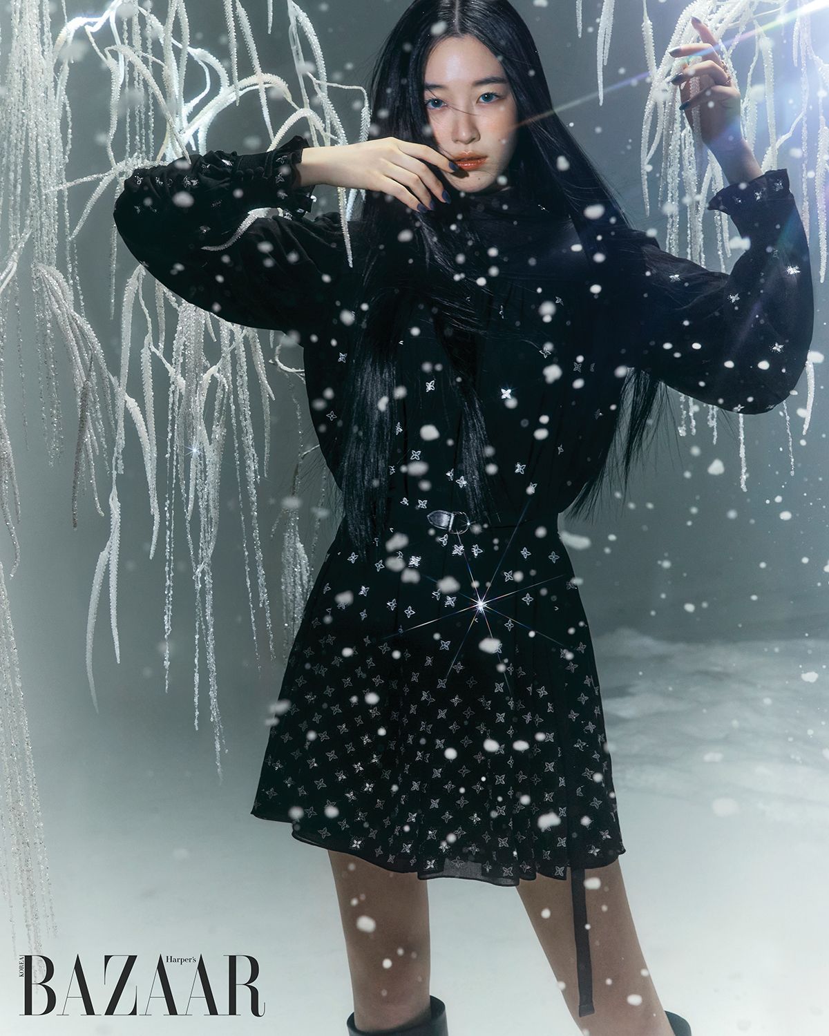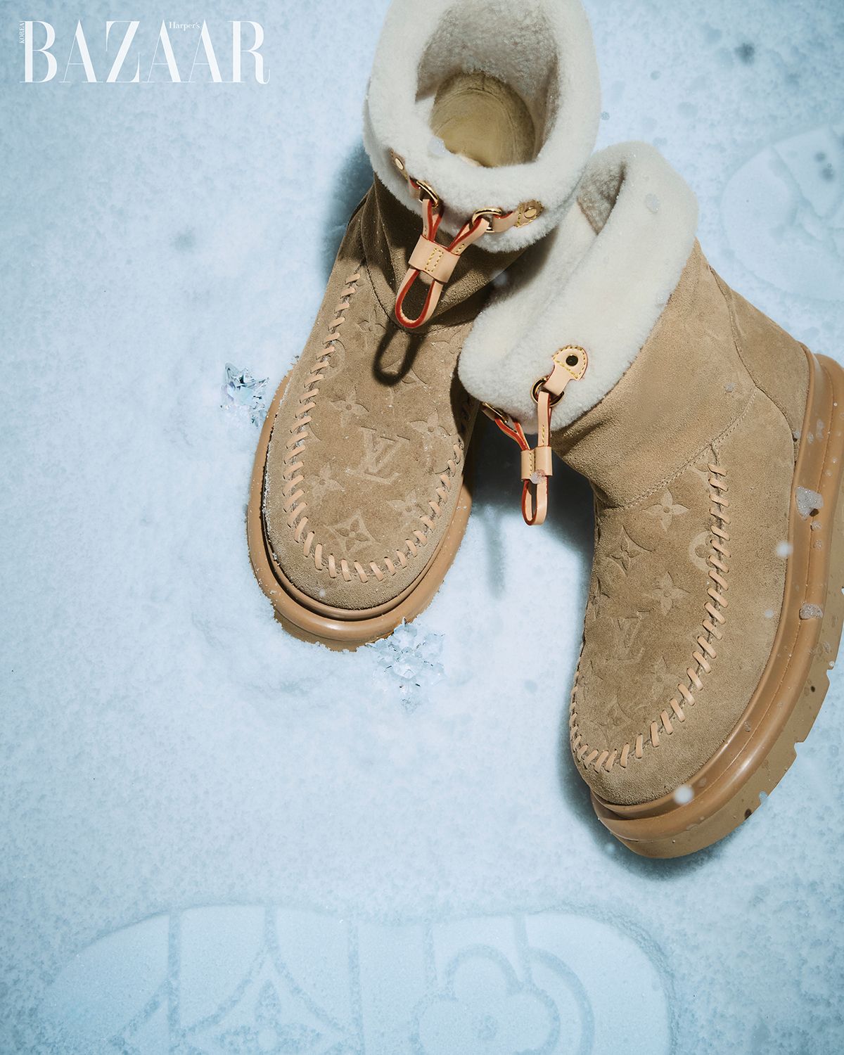 흩날리는 눈발 속에서도 빛을 발하다. 루이 비통의 스키 컬렉션과 함께한 배우 원지안의 고요하고도 강렬한 순간.