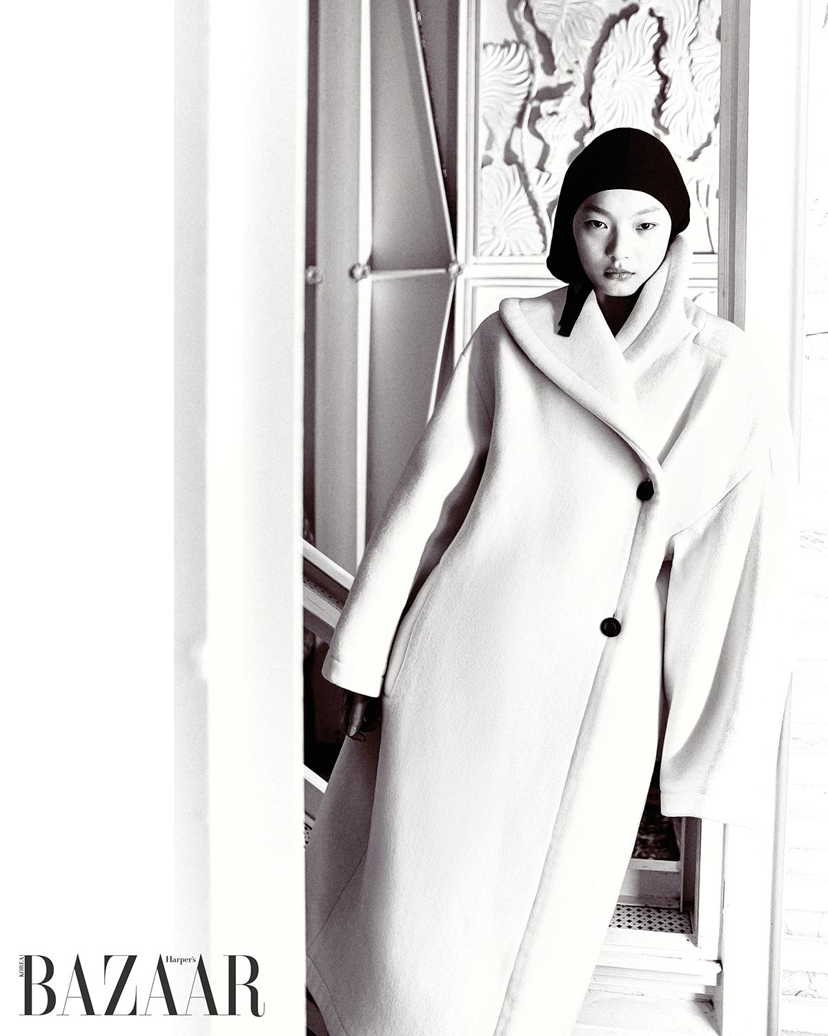 ‘레지노(Regino)’ 울 코트, ‘디온’ 모자는 The Row.