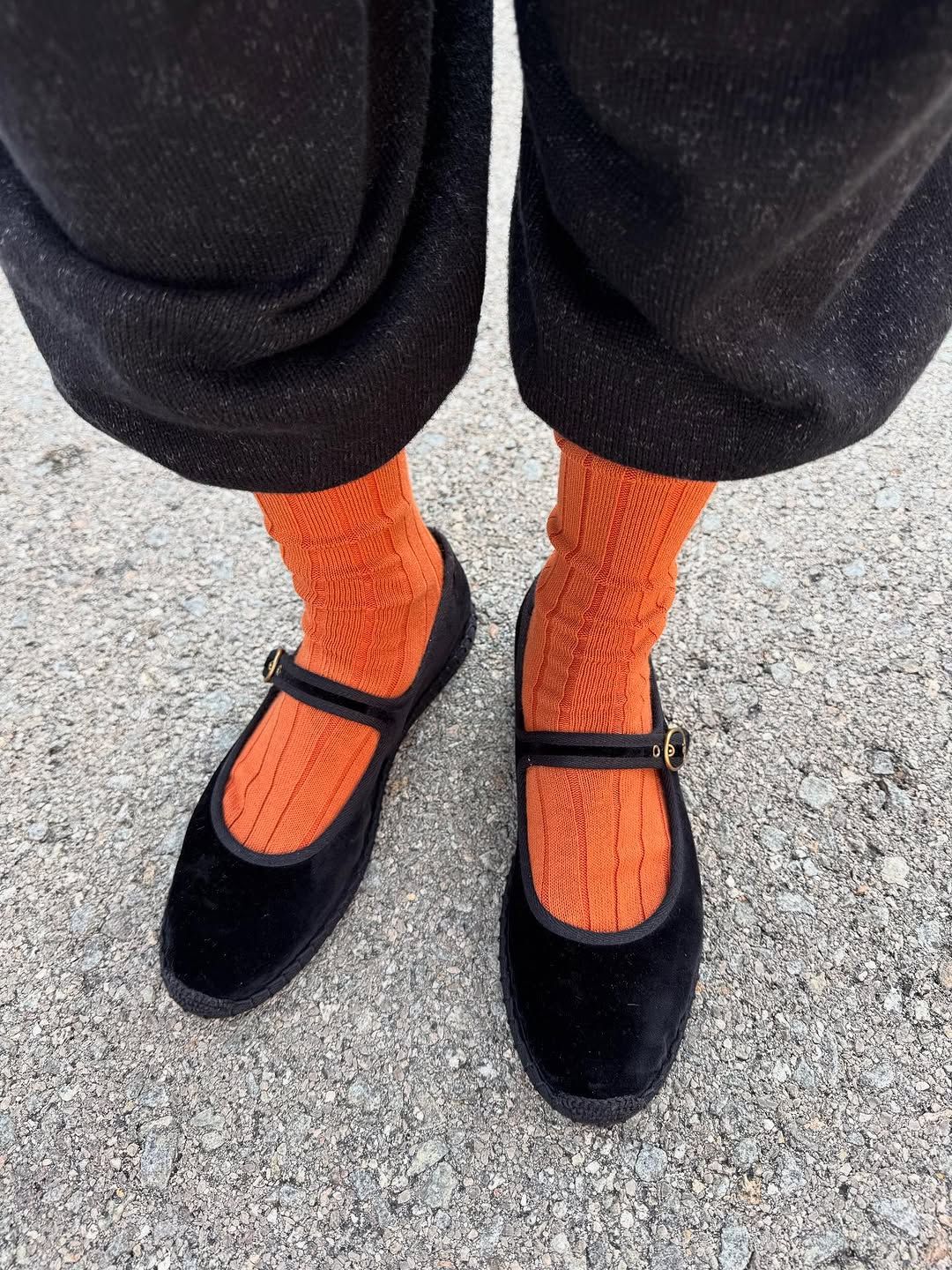 런던 기반의 패션 크리에이터 케이트 클렘은 양말을 과감하게 ‘컬러 테라피’라고 부른다. 그녀의 스타일링은 옷과 양말(때때로 타이츠), 슈즈를 하나의 팔레트로 묶어 조합하는 방식이 특징인데 이 세 가지의 색이 충돌하거나 이어질 때 생기는 감각을 누구보다 잘 이해하고 활용한다. 케이트의 피드는 바라보는 것만으로도 기분이 환기될 만큼 색이 풍부하며 양말 한 켤레가 어떻게 룩의 무드를 새로 만드는지 가장 직접적으로 보여주는 예다.