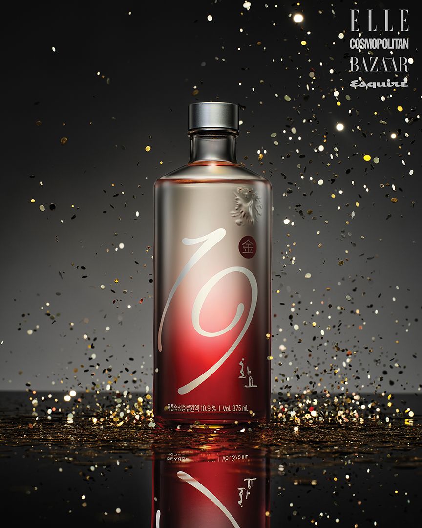 100% 국내산 쌀을 옹기에서 긴 시간 숙성해 만든 원액에 오크 통에서 숙성한 원액을 블렌딩한 프리미엄 증류주. 알코올 도수 19도로 목 넘김이 부드럽다. 화요 19金 HWAYO.