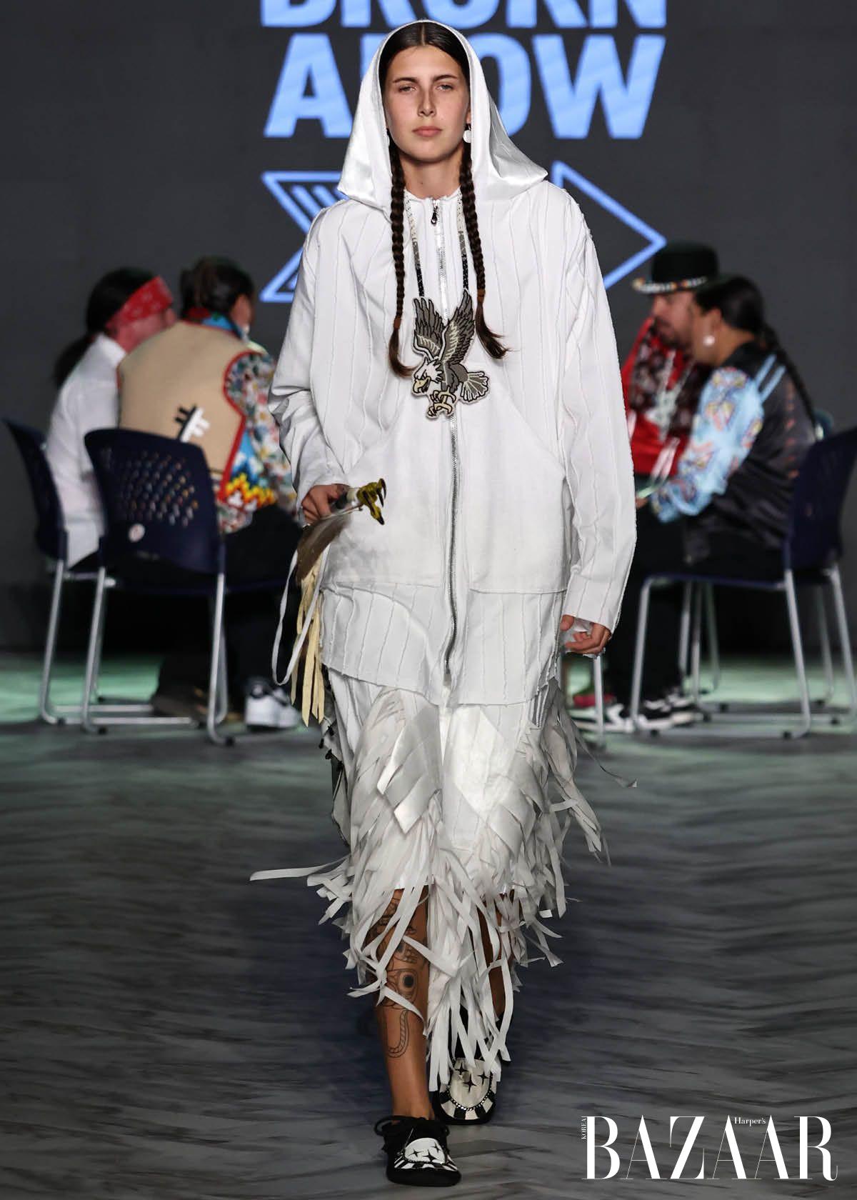GURL 23은 원주민 문화에서 영감을 받아 선댄스 의식과 식스티즈 스쿱에서 출발한 깊이 있는 서사를 BROKN AROW 컬렉션으로 풀어냈다. 바느질된 직물과 세심한 시각적 디테일을 통해 진실, 치유, 화해라는 메시지를 강렬하면서도 정교하게 전달한다. NITENMON의 ‘Time and Distance’ 컬렉션은 고대의 장인정신과 현대 디자인을 연결하며, 빈티지 14인치 폭의 실크 기모노 원단을 새롭게 해석했다. 기모노가 지닌 초월적 아름다움을 새로운 세대와 다시 잇는 시도다.