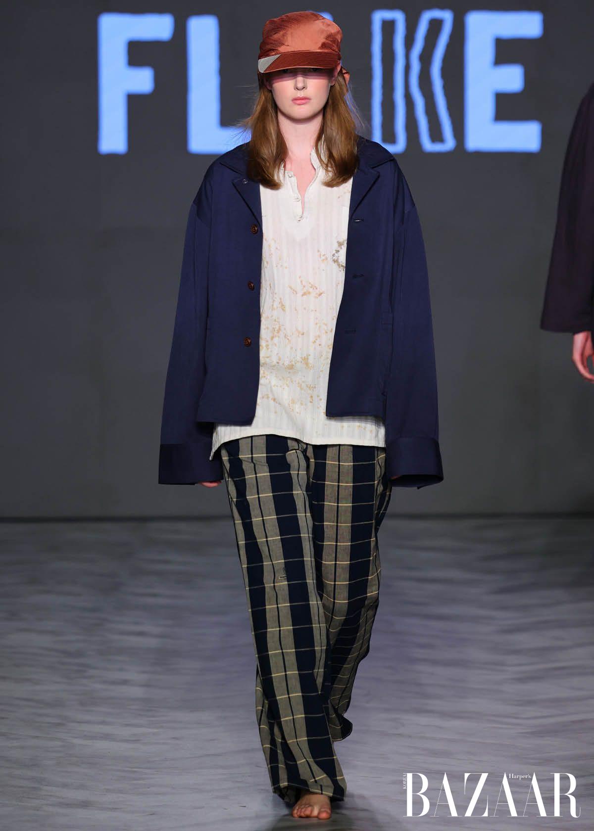 Remake by FLAKE는 일본 빈티지 소재를 역사 속 군복과 민간복의 형태와 결합한 컬렉션을 선보였다. 체크 이불과 후톤 원단, 기모노 직물, 현지 제작 천 등을 활용해 각 작품에 담긴 질감과 이야기를 존중하며, 과거의 실용성과 절제된 아름다움에 대한 경외를 표현했다. Empromo는 문화적 유산을 보존하는 동시에 일상 속 우아함을 기리는 컬렉션을 이야기한다. 수작업 염색 직물과 금박 디테일을 통해, 색과 장식 하나하나에 정교함을 더하며 풍부하면서도 섬세한 실루엣을 완성했다.