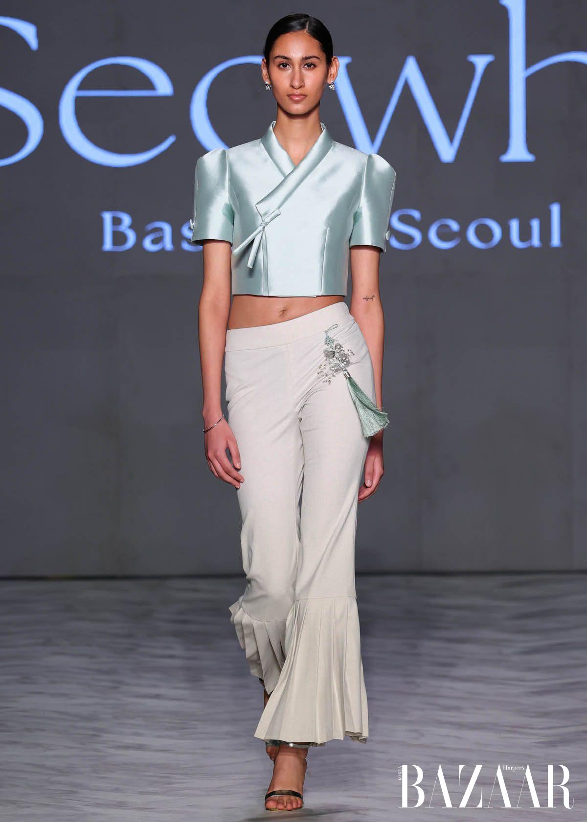 ‘서화의 정원(Garden of Seowha)’이라는 컬렉션으로 밴쿠버 패션위크에 첫선을 보인 서화. 한국 전통을 기반으로 현대 여성을 위해 세련되게 재해석한 이번 컬렉션은 자연의 향기에서 아이디어를 얻어 완성됐다. 깔끔한 테일러링과 레이어드 실루엣, 실크와 자카드 등 고급 소재를 활용해 한복의 요소를 현대적으로 풀어냈으며, 섬세한 자수와 부드러운 색조를 통해 우아함과 강인함이 공존하는 미학을 제안한다. 전통과 현대를 잇는 디자인은 차분하면서도 자신감 있는 여성상을 그려낸다.
