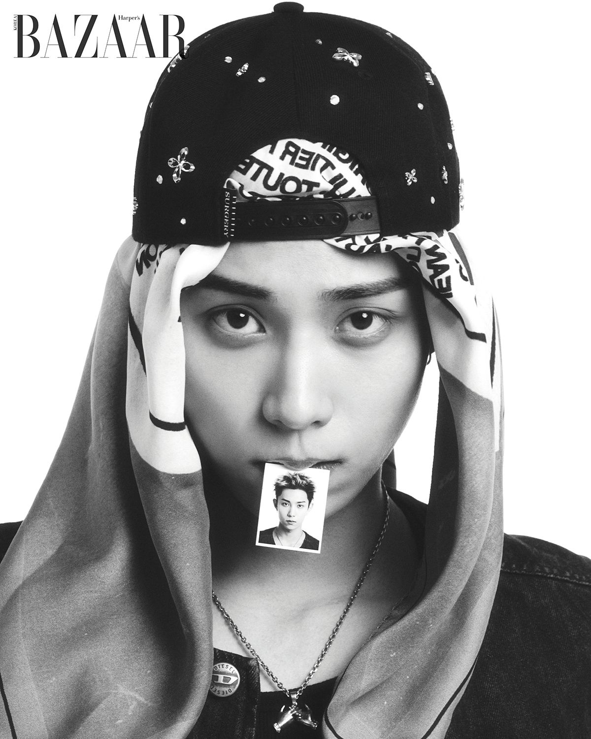 재킷은 Diesel. 모자는 Surgery. 스카프는 Jean Paul Gaultier.