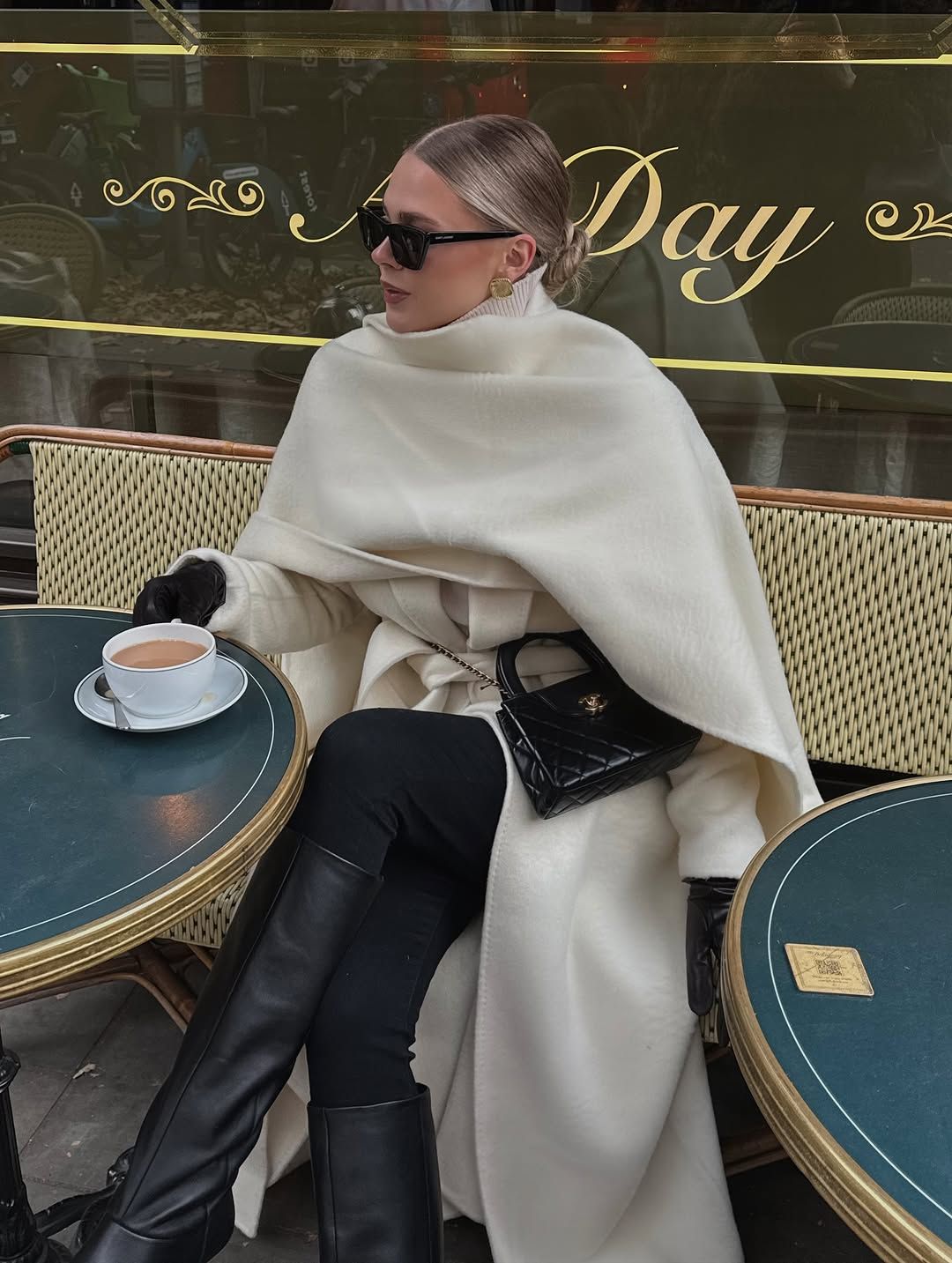 포멀한 스타일의 화이트 코트 하나면 우아하고 절제된 스타일이 한 번에 완성된다. 절제된 디테일과 클래식한 스타일을 완성하고 싶다면 인플루언서 밀다 구델라테는 진부함과 클래식한 에지의 경계를 확실히 알고 조율한 영리한 인물. 완벽하게 재단된 화이트 칼라에 화이트 터틀넥 니트를 매치해, 미니멀하면서도 구조적인 느낌을 상의를 통해 살리는 한편, 컬러 배치를 통한 악센트를 주기 위해 블랙 데님에 블랙 롱 부츠를 매치해 쿨하게 마무리 지었다. 때로는 같은 소재와 컬러의 숄을 둘러주는 것도 더 깊이 있는 분위기 연출에 도움이 된다.